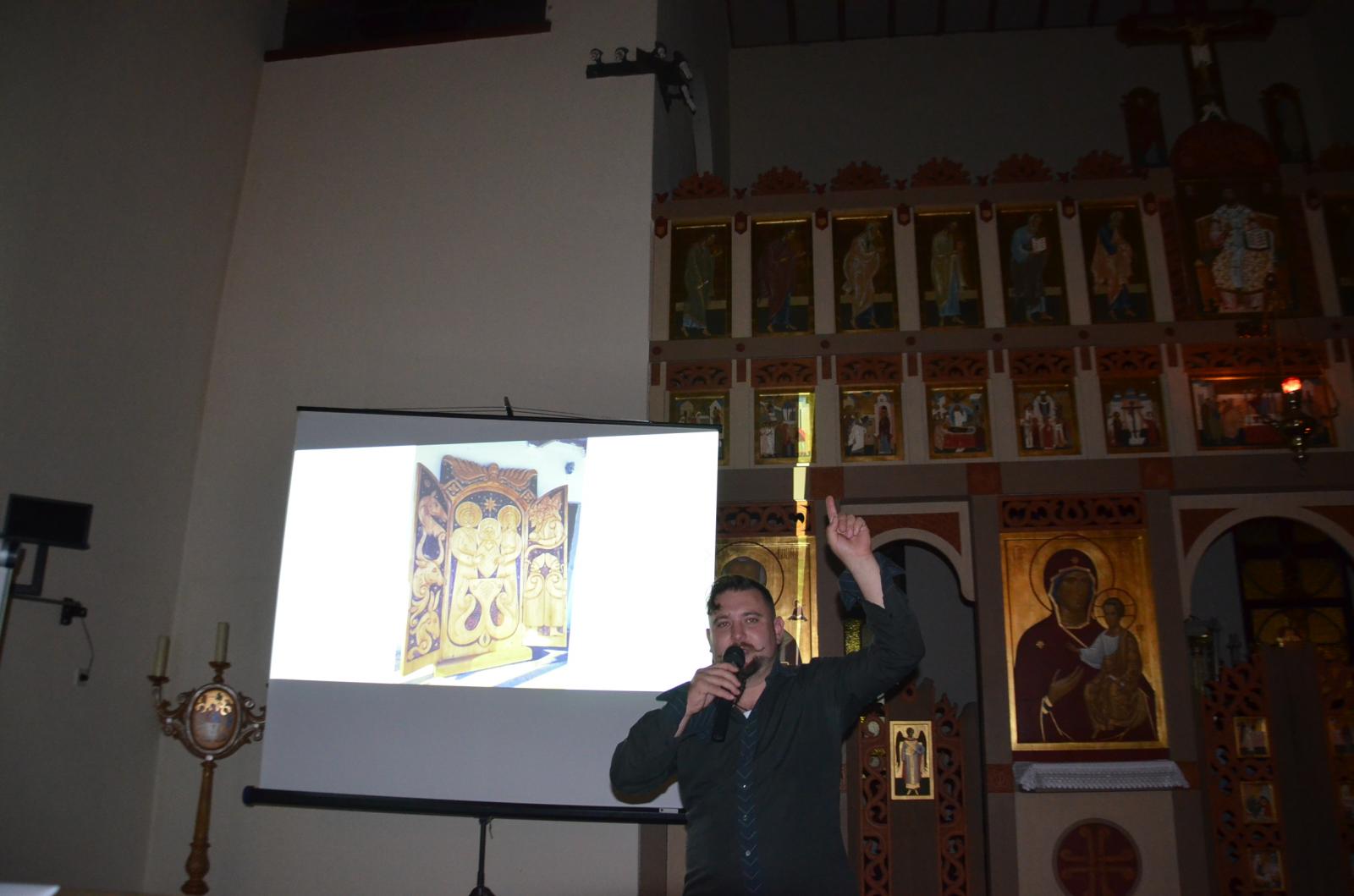 A továbbiakban „A Kereszt, mint kulturális örökség” címmel volt hallható Réti- Szabó Sándor Faragozó mester előadása. Sándor farag, ragoz, mesél, azaz faragoz. Előadásában több mint száz alkotásának legszebb darabjairól mesélt, amelyek az imakereszteken át, a koronásoltárig bemutatják a különböző keresztábrázolásokat. Sőt, az ember legősibb társaként beszélt a fáról, ami bizony végigkíséri az embert a születéstől a halálig, a bölcsőtől egészen a sírig… Különösen kedves vendégként érkezett hozzánk, hisz a városunkhoz tartozó Zelemér csonkatornyánál álló kereszt is az ő keze munkáját dicséri.