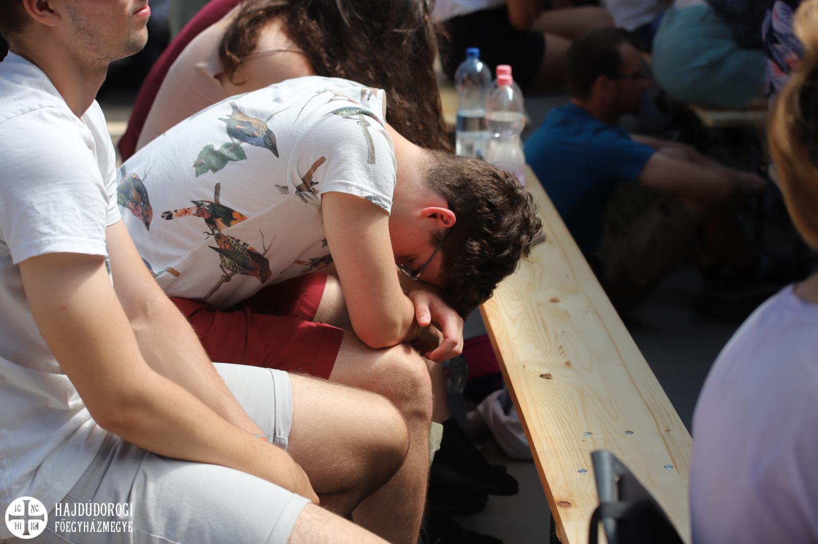 A délután imaórával folytatódott, majd Fülöp atya tartott elmélkedést a fiataloknak. Buzdította őket, hogy ne ijedjenek meg az előttünk álló nehézségektől. Jézus Krisztust idézve azt mondta: ne ijedjünk meg se a háborútól, se a járványtól, se a gazdasági válságtól. (Mk 13,7) Nagyszüleink is átvészeltek nem egy, de két világháborút, idegen megszállást, járványokat, forradalmat, és mégis itt vagyunk.