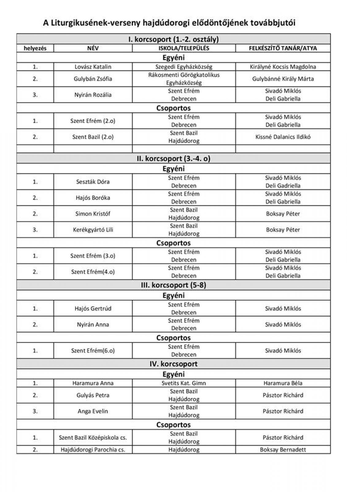 2018. február 17-én rendezték meg a liturgikusének-verseny egyházmegyei fordulóját. Íme az eredmények, gratulálunk, találkozunk a döntőben!
