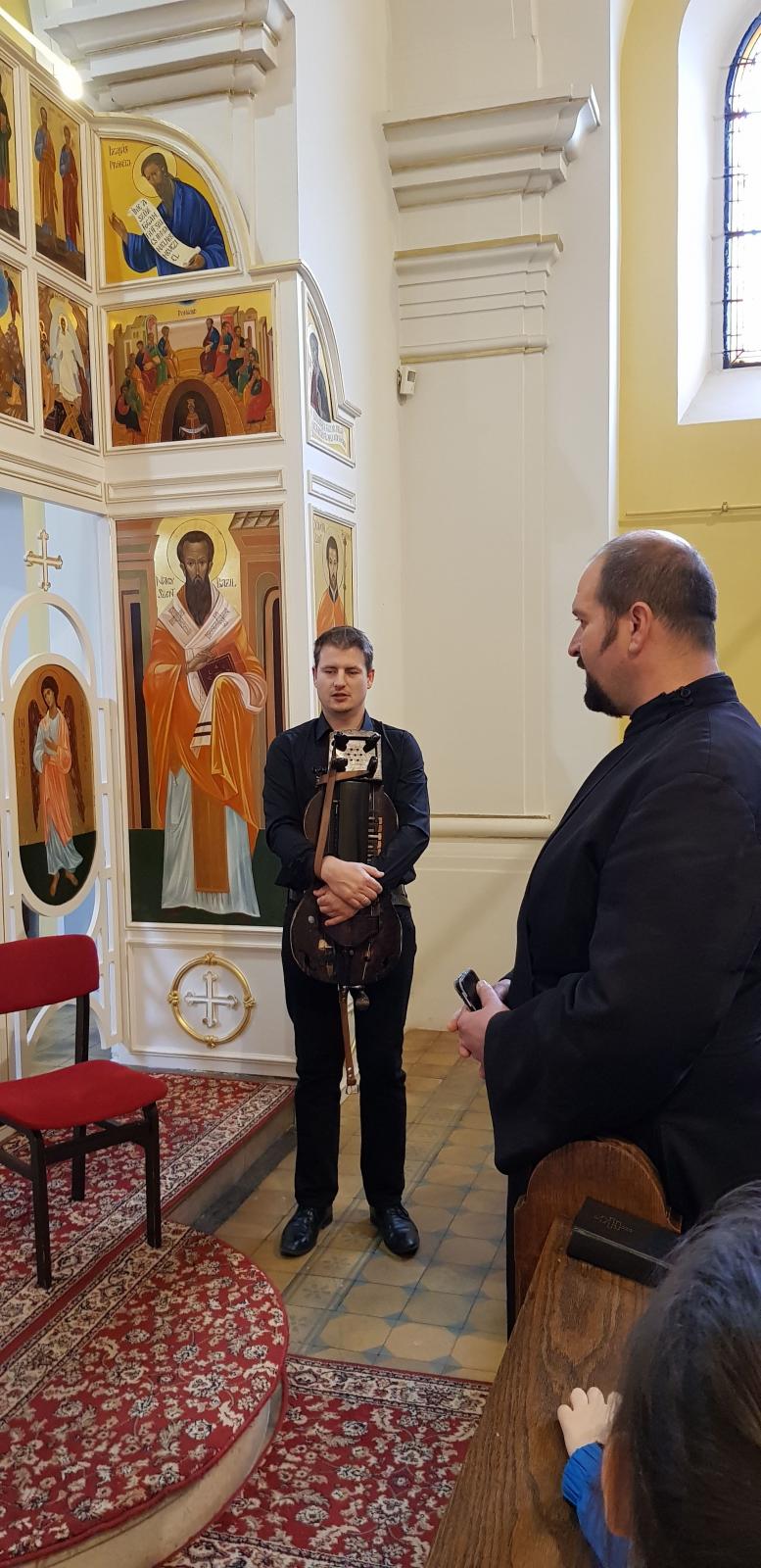 Öröm számunkra, hogy az első állomáshelye lehetett a hat helyszínből álló sorozatnak Pécs és a város szívében álló kicsiny, ékes templom. Ezen a vasárnap délutánon valamennyiünk számára zenei és lelki élményt nyújtott a két egyszerű, ősi hangszer megszólaltatása.