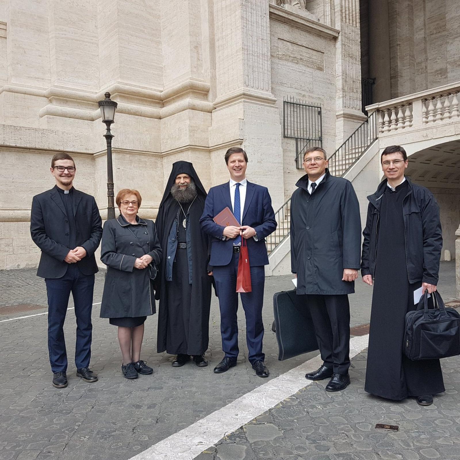 Eduard Habsburg (Magyarország vatikáni képviselője, Fülöp metropolita mellett jobbra) közreműködésével jutott el a küldöttség Ferenc pápához
