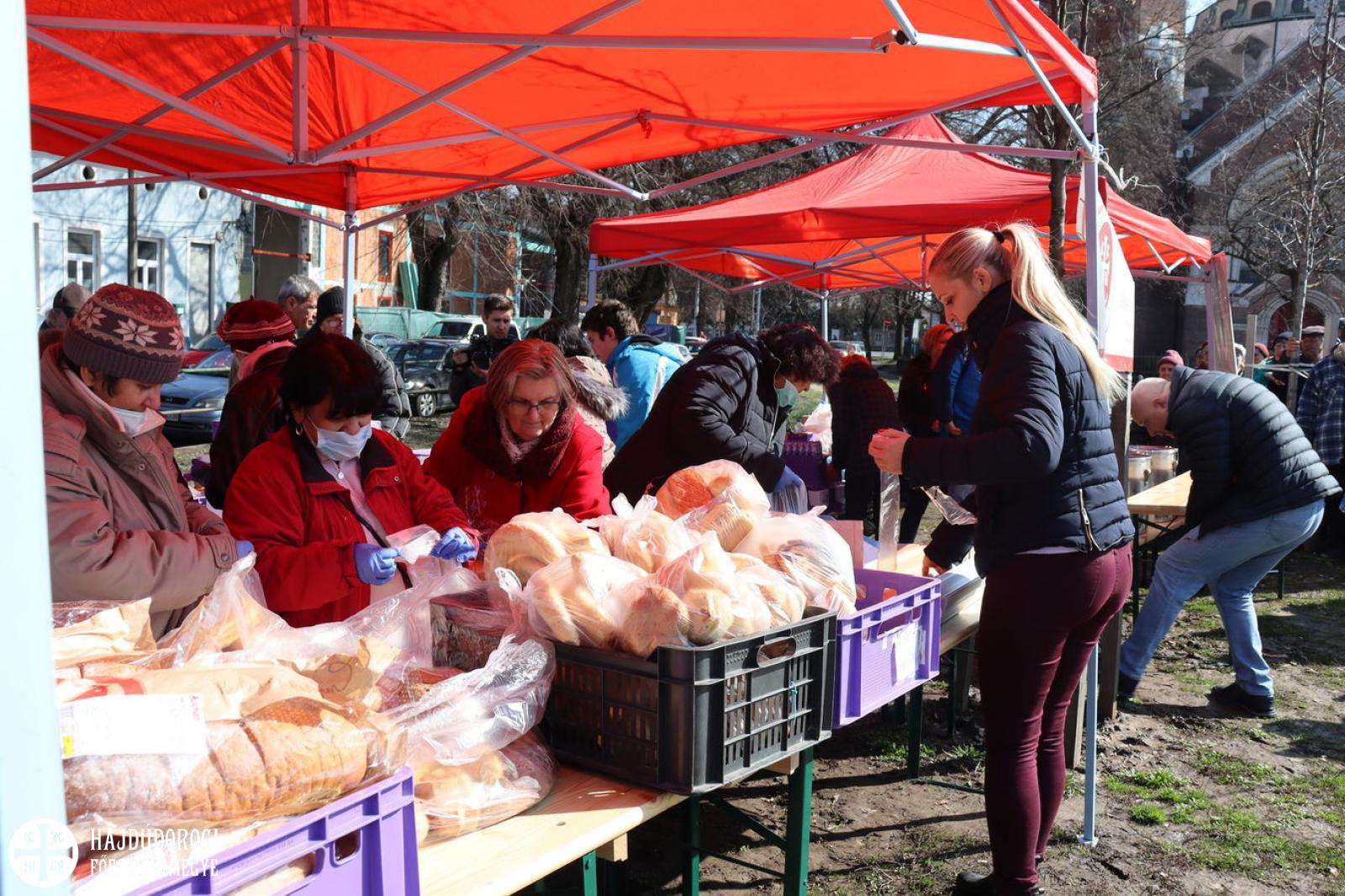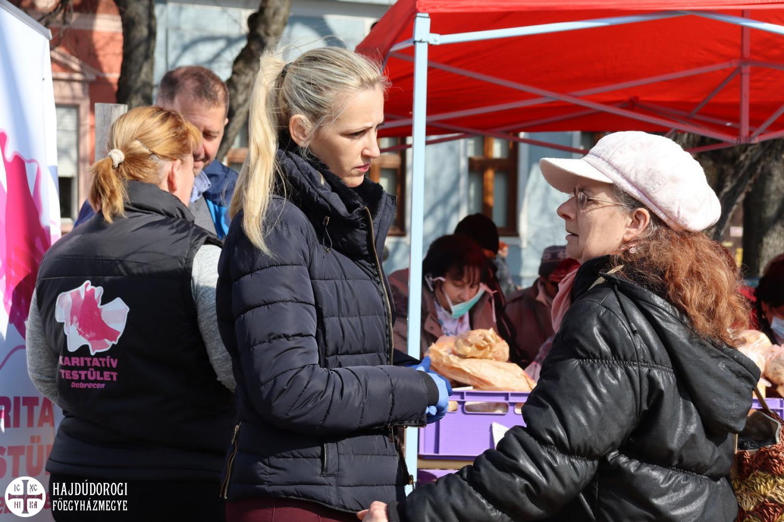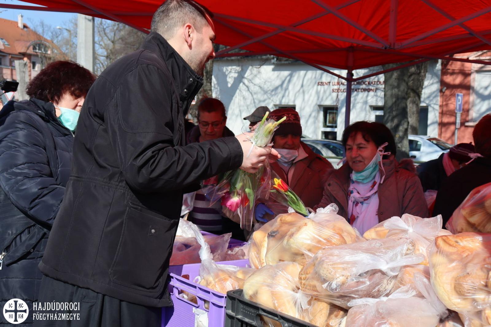 Ezúton is köszönjük a Hajdú-Bihar Megyei Élelmiszerbank Egyesület által felajánlott péksüteményeket és csokoládét, illetve a Debreceni Karitatív Testület segítségét is, tőlük ugyanis édességet kaptak a hölgyek. Hálával tartozunk az önkénteseknek is, akik ismét idejüket áldozták e nemes célra. Rájuk a Szent Lukács Görögkatolikus Szeretetszolgálat külön gondolt, és egy szál virággal is megköszönték rendszeres, önzetlen szolgálatukat.