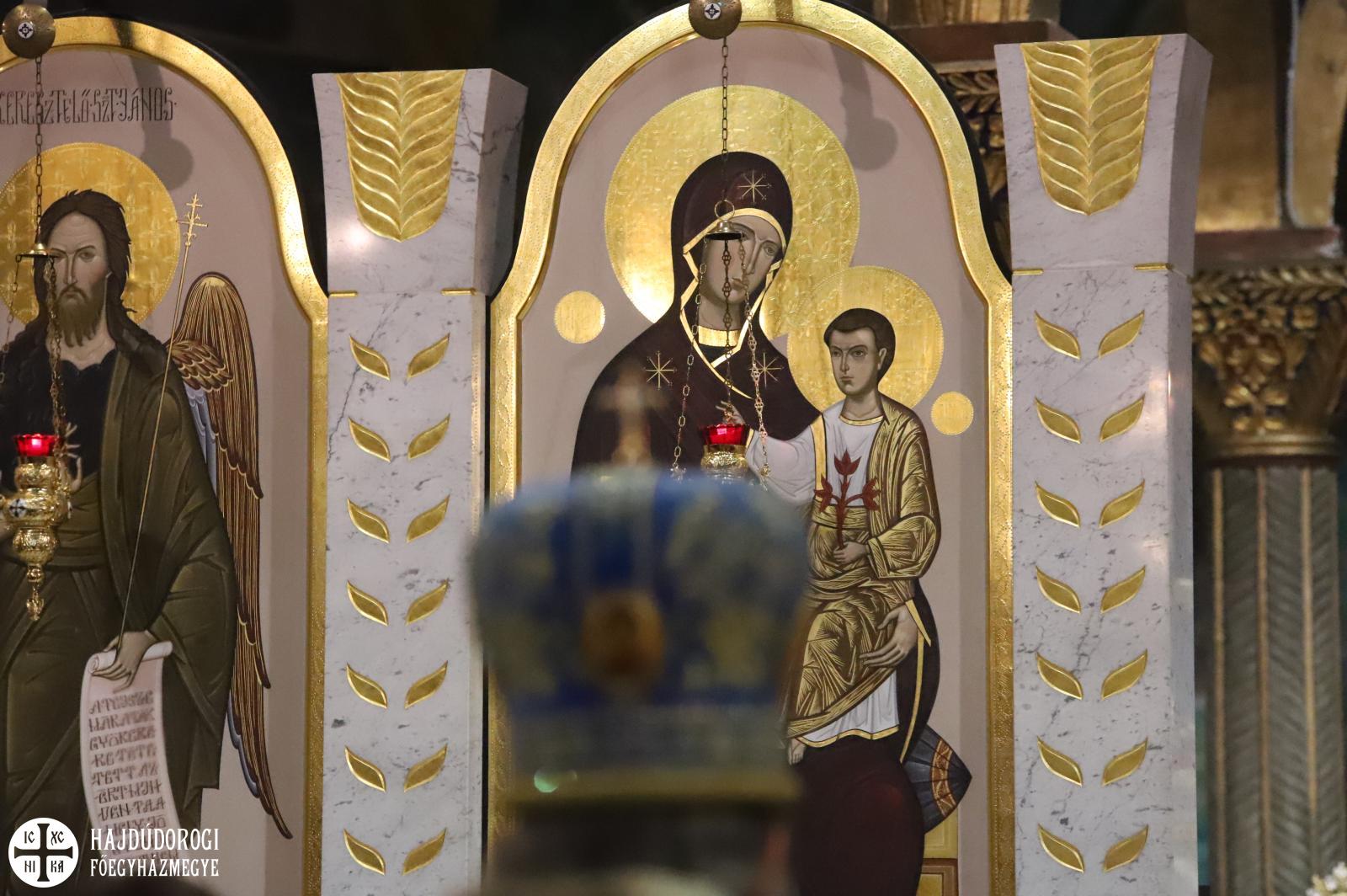 Amikor a Szent Liturgiában elhangzik a felszólítás: Istenfélelemmel, hittel és szeretettel közeledjetek! –akkor kinyílik ez a királyi ajtó, és az egyháza diakónuson vagy a papon keresztül hív, hogy ebben a titokban minket is részesítsen. Tehát Mária az első volt, aki a szíve alatt hordozhatta az Isten Fiát. De őutána minden megkeresztelt ember, mindenki, aki hozzá hasonlóan igent mond Isten akaratára, az hozzá hasonlóan szintén a szívébe fogadhatja az Isten Fiát. Személyesen átélheti a titkot, az örök idők óta elrejtett titkot, ami ma megnyilatkozott és megnyilatkozik minden Szent Liturgiában, minden pillanatban mikor kinyílik a királyi ajtó, hogy Isten egyesül az emberrel – egészített ki magyarázatát a főpásztor.