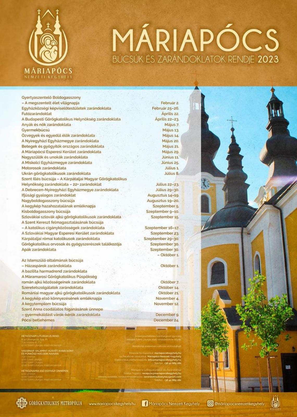 Az alábbiakban a Máriapócs Nemzeti Kegyhely búcsúinak és zarándoklatainak 2023-as rendjéről tájékozódhat.