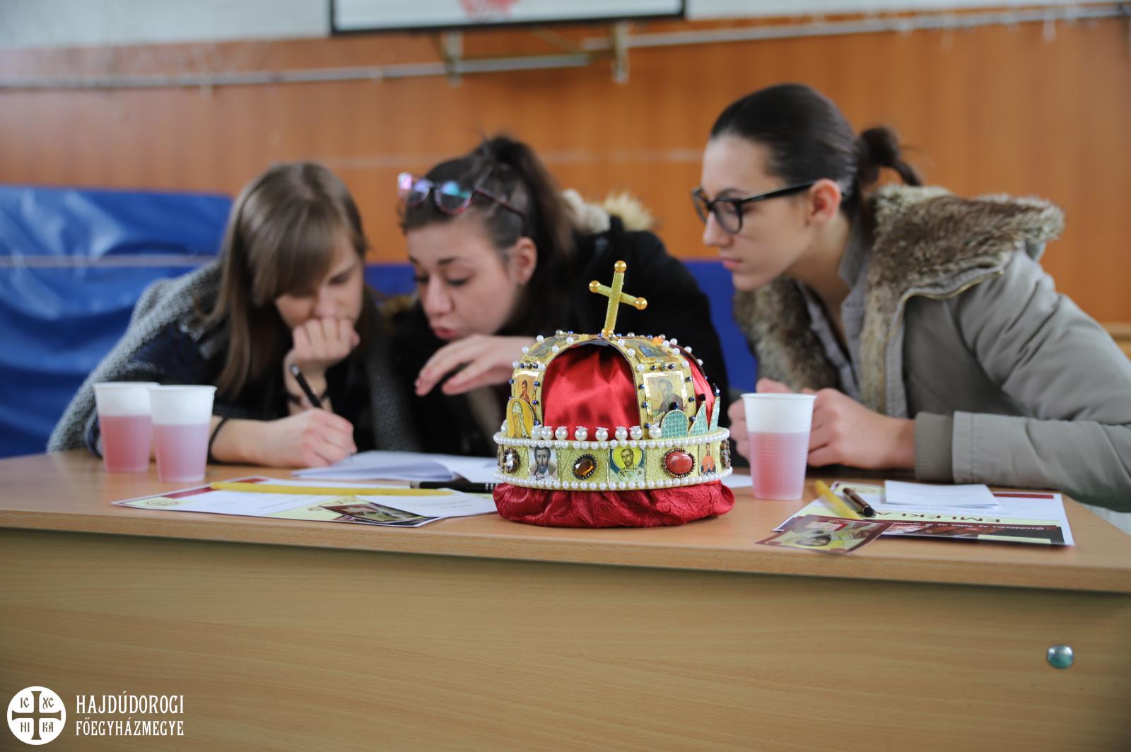 A verseny Orosz Atanáz miskolci megyéspüspök megnyitójával kezdődött, amit Boronkai József szakmai beszámolója követett. A döntő forduló első feladata egy szent életéből választott jelenet eljátszása volt, amelyre előre felkészülhettek a csapatok. Az értékelés szempontjai a tartalom, a felkészültség, az üzenet és az érthetőség voltak. Ezt a versenyszámot a Korányi Frigyes Gimnázium csapata nyerte meg Szent Erzsébet életéből egy jelenet bemutatásával. A következő próba egy tudásmérő feladatlap kitöltése volt, amelynek a témája Szent Erzsébet, Szent Piroska, Szent István, Szent László és Romzsa Tódor élete volt. A harmadik feladat pedig egy 120 darabos puzzle kirakása volt. Amíg a feladatlapok javításra kerültek, egy különleges esemény zajlott le a Dudás Miklós Görögkatolikus Általános Iskola és Óvoda egyik tantermében. Orosz Atanáz megyéspüspök atyát kérdezgethették a csapatok egy kötetlen fórum keretén belül.