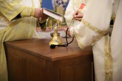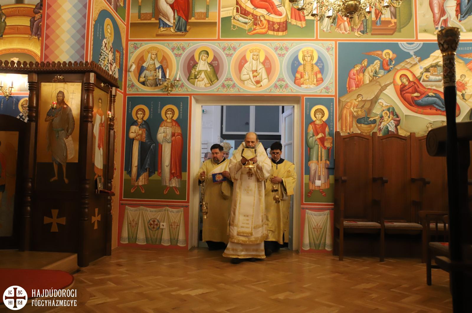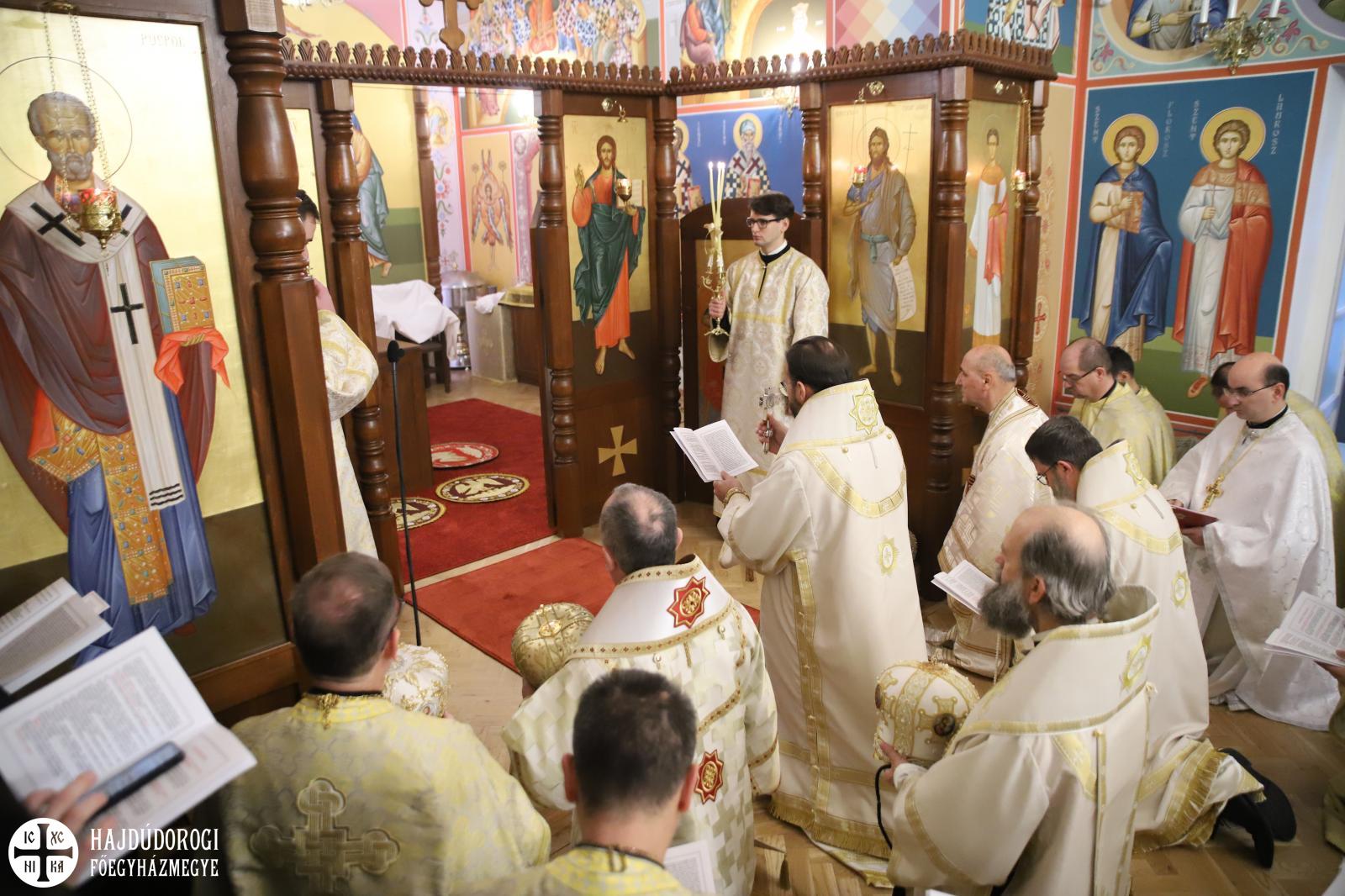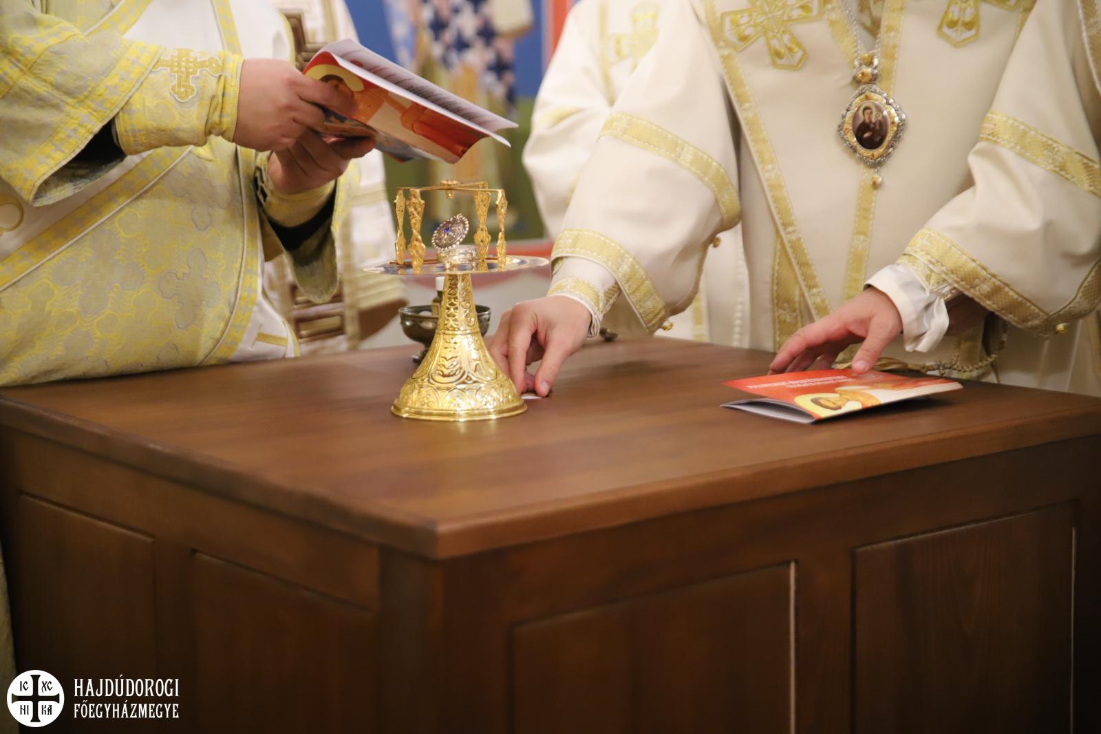 Most már magyarul is olvassuk a karácsonyi himnuszaink szerzőjének, Germanus Pátriárkának a liturgia magyarázatát, amelyben világosan szerepel, hogy az oltárt Jézus Krisztus sírja, amelyen az Isten bárányát bemutatják, s amelyen ő maga a főpap is, aki áldozatot mutat be, és a papok, akik körülállják az oltárt, lángoló tűzként állnak körülötte. Igen, ez a hivatásom. És ebben a kápolnában a magyarországi Görögkatolikus Metropólia székhelyén különösen is fontos átéreznünk és átélnünk ezt a hivatást. Jézus Krisztussal együtt lobogni, lángolni, fényt adni az ide belépőknek vagy a tőlük távolabb élőknek is. És nemcsak fényt, hanem távlatot, reménységet. Akik ebben a templomhajóban az oltárnál már Isten országának ragyogását látják, akik a kifestett templomfalakon Isten országának szentjeit és ábrázolásait látják, azok Szent Istvánnal együtt tekinthettek a magasba. Látom, a megnyílt eget. Látom Isten dicsőségét és Jézus Krisztust az Atyának jobbján.
