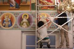 Időközben különleges ikonokkal gazdagodott a hely, ennek festésére egy albán származású művészt kértek fel, aki Tiranában az ortodox székesegyházban készítette a mozaikot. Josif Drobonik (1952-2020) albán festő, mozaik- és ikonográfus, az egyik legjelentősebb kortárs művész volt. Ő kezdte el a belső festési munkálatokat. A szentély befejezése után azonban visszatért Teremtőjéhez. Sajnálatos halála után lánya, Mirlinda Drobonik és édesanyja fejezte be az ő munkáját. Az ikonokon lévő szövegek felfestésére viszont már az érsek-metropolita vállalkozott.
