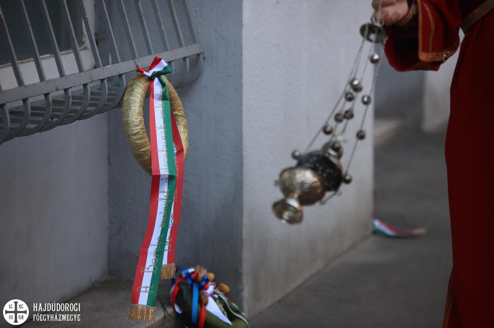 A Szent Liturgia után az Iparkamara utcában kihelyezett emléktábla előtt végeztünk pannachidát, majd a közösség megkoszorúzással fejezte ki tiszteletét.