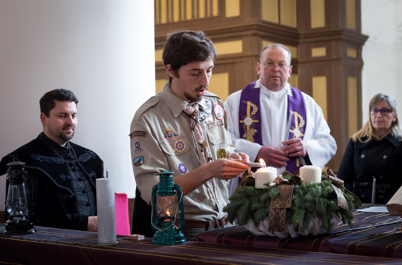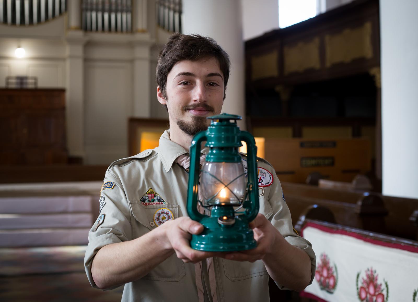 A Turányi Szilárd cserkész csapatkapitány elmondta, hogy a Betlehemi Láng Európába szállításának kezdeményezése 1986-ban Ausztriából indult el. Azóta az osztrák Cserkészszövetség (PPÖ) minden évben repülőgéppel hozza el Bécsbe a betlehemi bazilika örökmécseséről meggyújtott lángot. A környező országok cserkészei egy ökumenikus istentiszteletet követően viszik tovább Isten ajándékát. A békelángot a magyar Cserkészszövetség szállítja Bécsből Dunavarsányba. A 43. Főnix cserkészcsapat 2003 óta hozza el a Szent Lángot Nyíregyháza érintésével Debrecenbe egy speciális mécsesben.