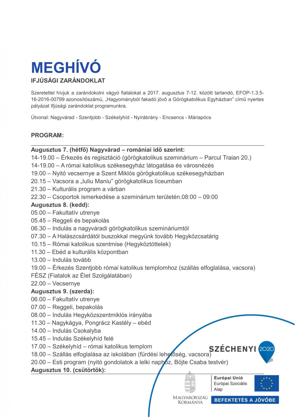 Szeretettel hívjuk a zarándokolni vágyó fiatalokat a 2017. augusztus 7-12. között tartandó Ifjúsági zarándoklat programunkra. Részletek a meghívóban.