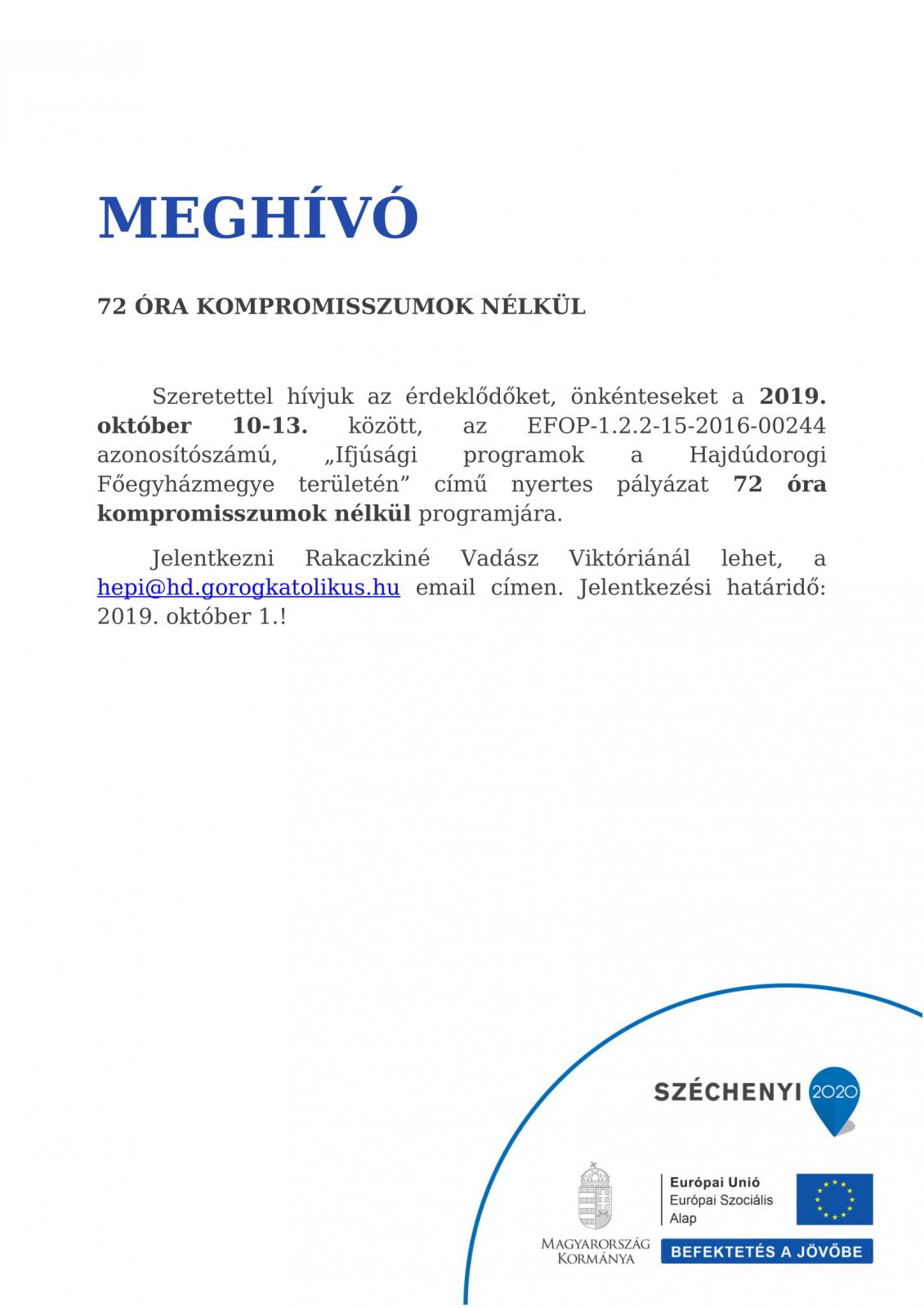 Meghívó a 72 óra kompromisszumok nélkül önkéntes programra