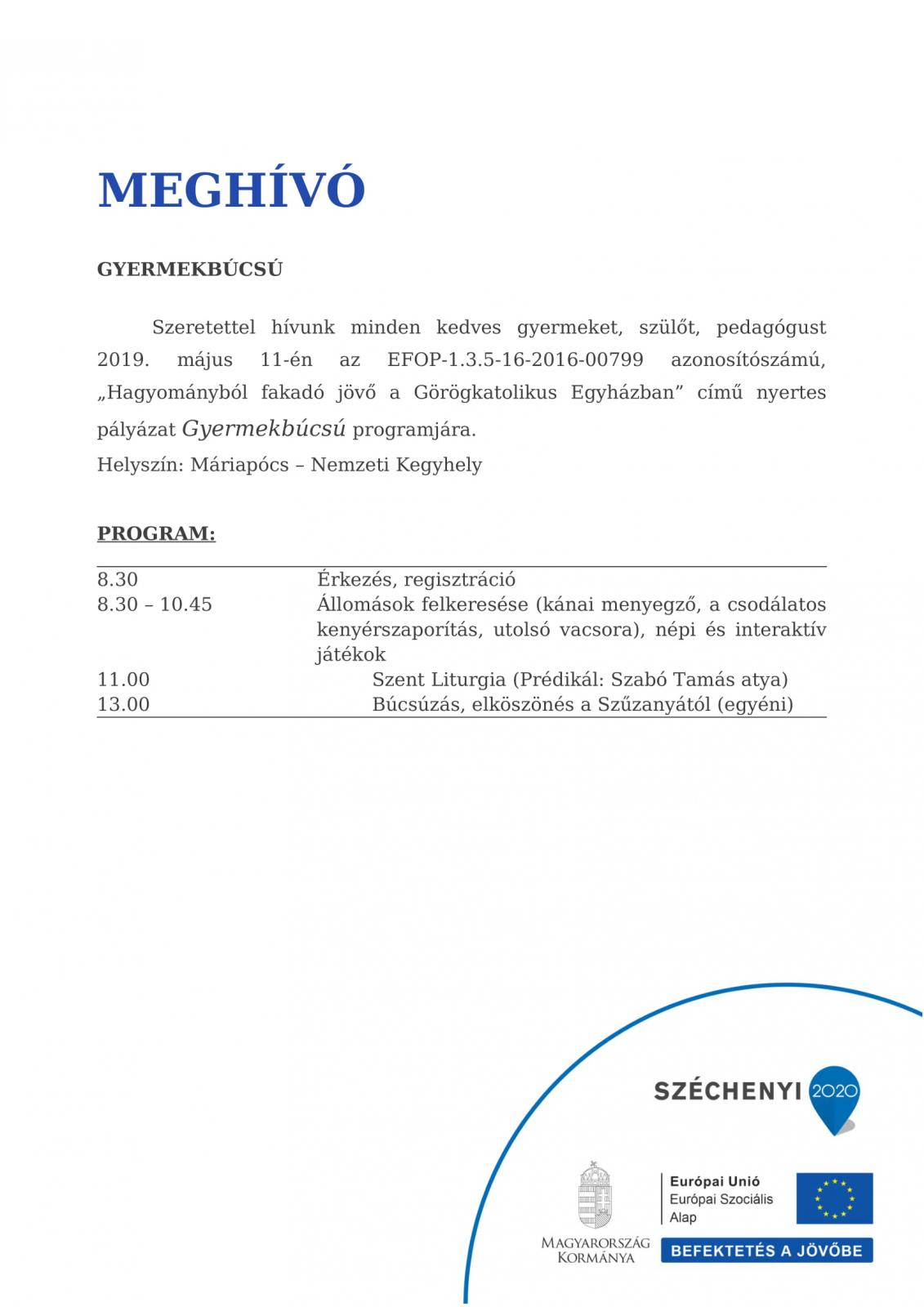 Meghívó gyermekbúcsúra