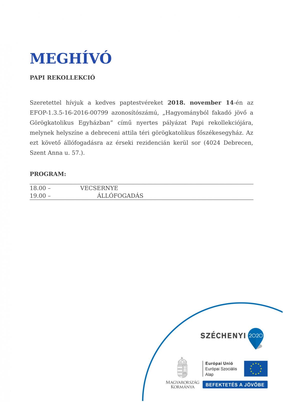 Meghívó papi rekollekcióra