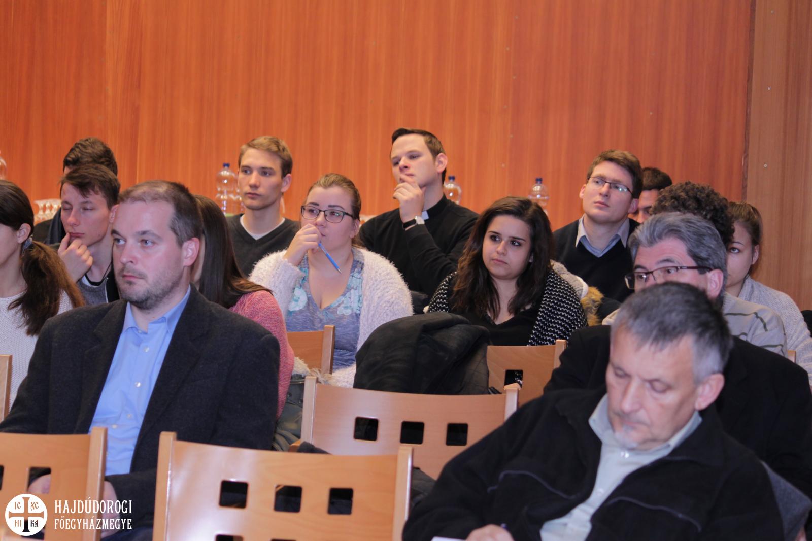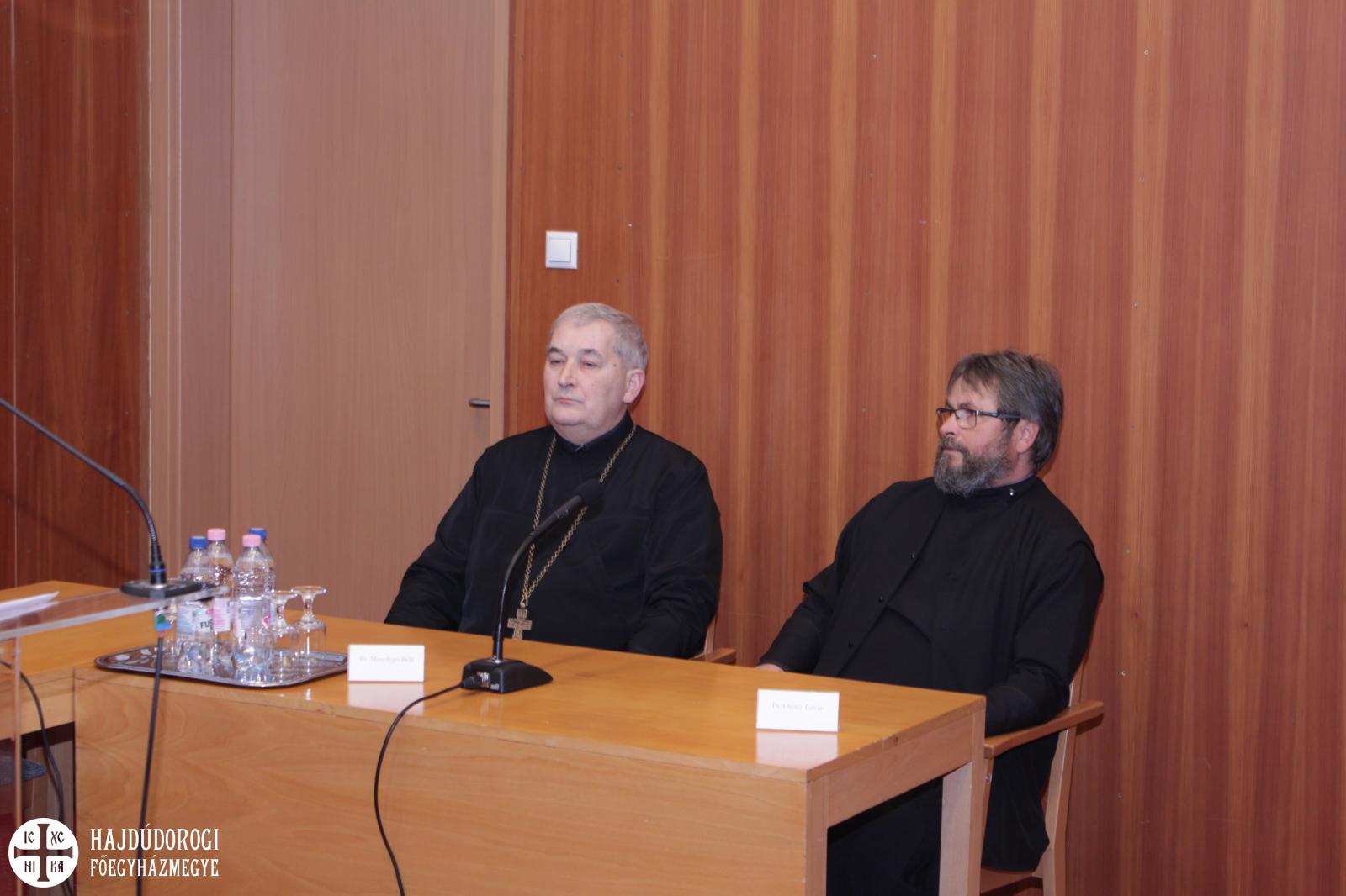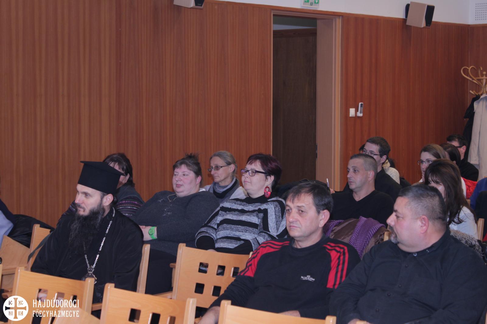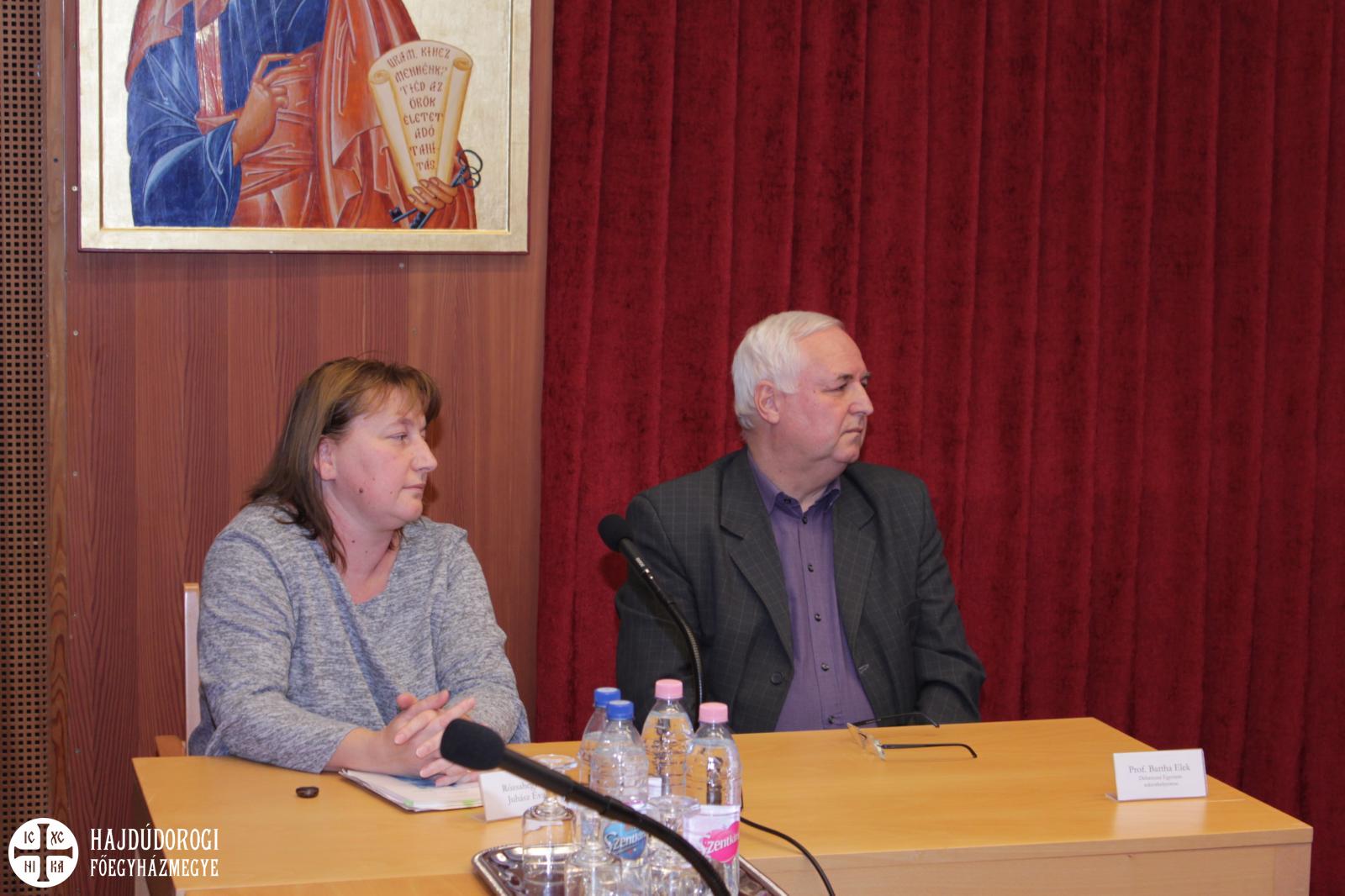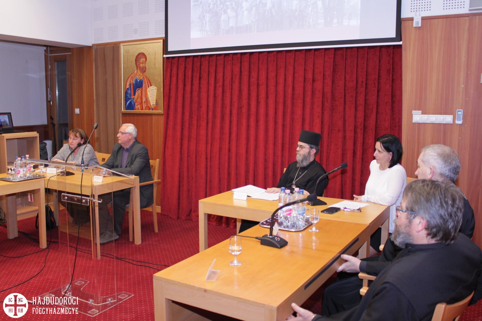 Orosz Atanáz megyéspüspök úr nyitó gondolatai után Prof. Bartha Elek és Rózsahegyiné Juhász Éva előadása hangzott el. Mind a ketten néprajzosként, de különböző szempontból mutatták be a roma egyházközösségek vallási szokásait. A kerekasztal beszélgetés pedig kiváló alkalmat adott arra, hogy a résztvevők és a közönség között egy személyes hangulatú párbeszéd alakuljon ki.