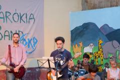 A Parókia Band immár valóban számottevő repertoárral és magas színvonalú zeneiséggel mutatta be a papok és fiatalok közti vidám együttműködés gyümölcsét, és Fülöp metropolita atya különleges vendégfellépőként egy – elmondása szerint is – „filozófia nélküli”, vidám dalt adott elő, amely jól eső derűt csempészett a hallgatóság soraiba. Cseh Tamástól az Antoine, Desiré és a szél című dalt énekelte a zenekarral, ezzel is felvezetve az est tematikáját. (A produkcióról videó is készült, a cikk végén látható)