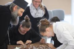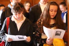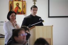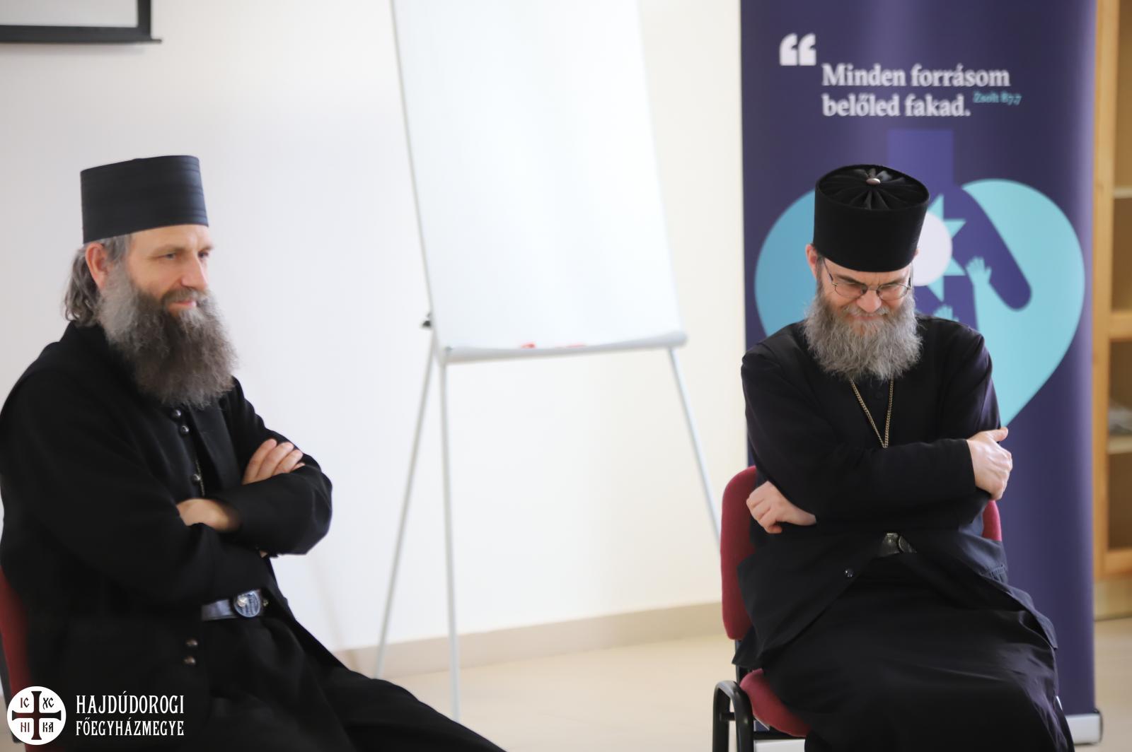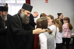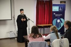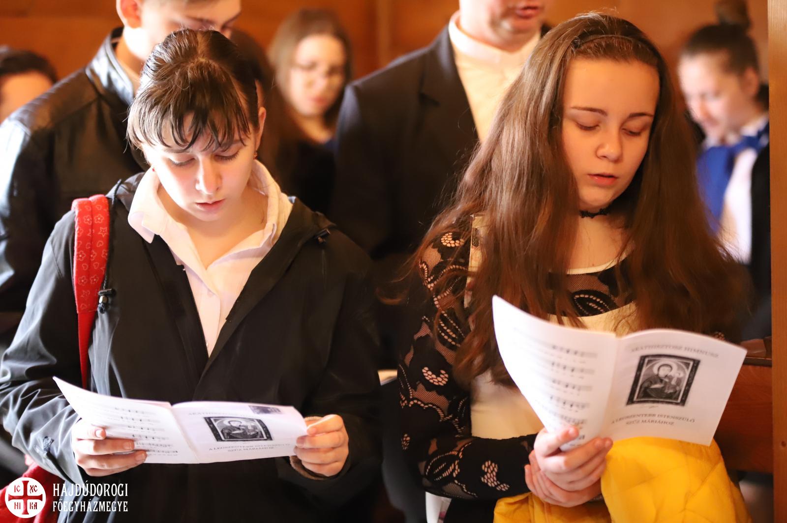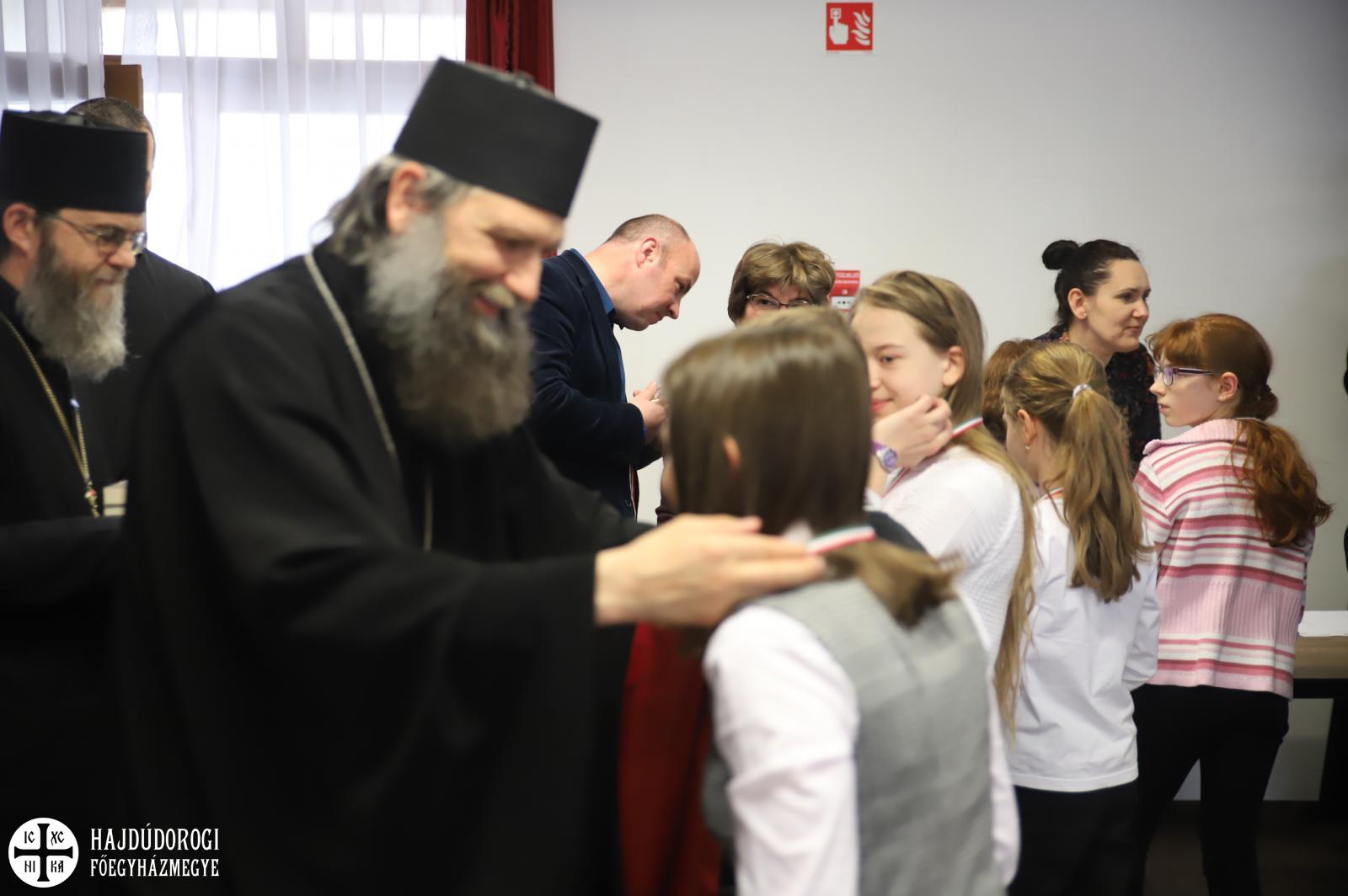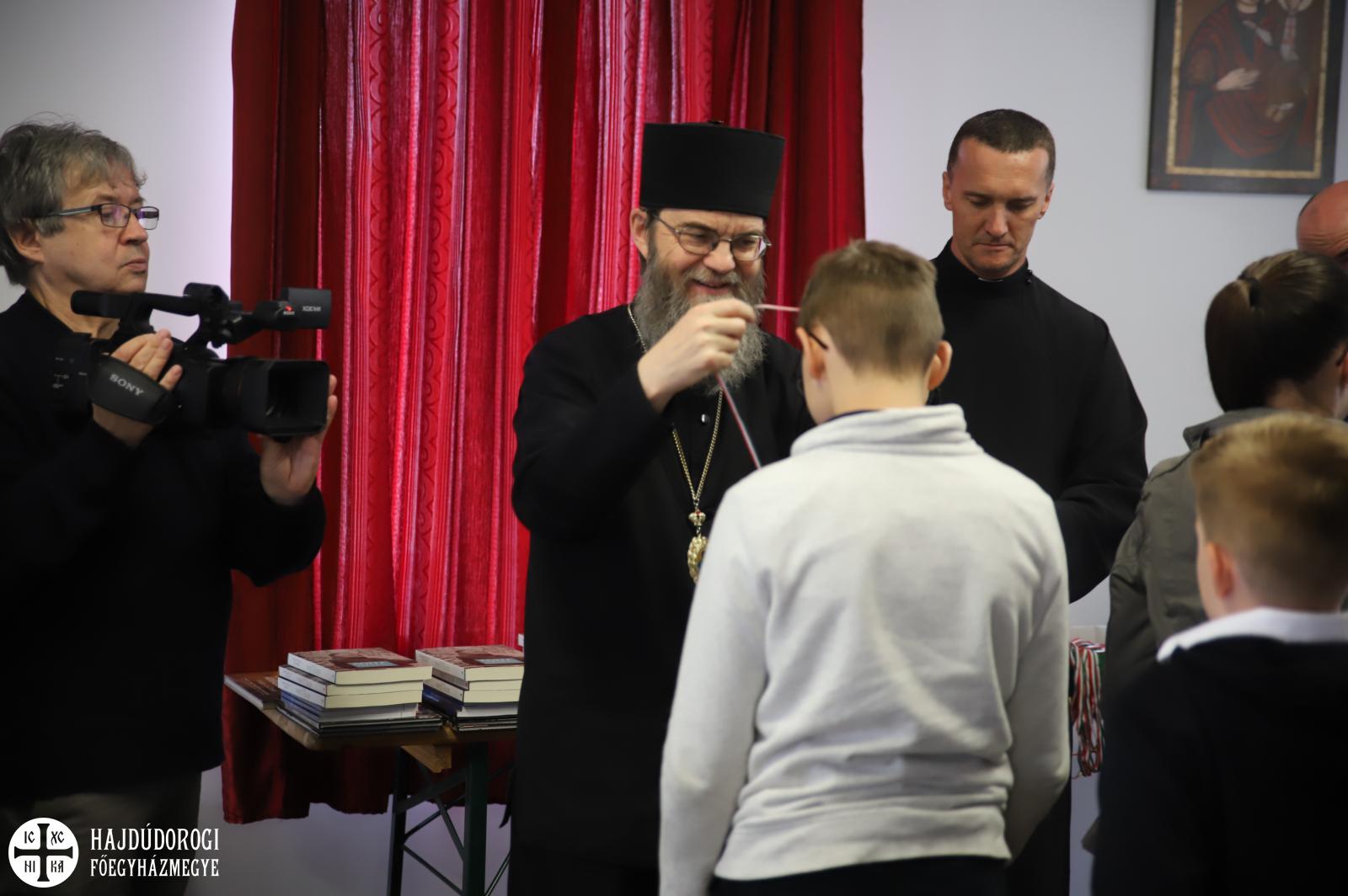 A fatemplomban Atanáz püspök atya vezetésével imádkozták el a himnuszt a középiskolások, akiket aztán érsek-metropolita atya bátorított a döntő megkezdése előtt. Fülöp atya Akathisztosz ünnepéhez kapcsolódóan az Istenszülő hivatásáról beszélt, ami nem más, mint az édesanyává válás. Ő erre igent mondott az Úrnak, pedig nem tudta, hogy mi lesz ennek a következménye, csak azt hogy a Teremtő akaratának eleget fog tenni. Így teljesítette be a hivatását, amit az Isten neki szánt. Mindenkinek van hivatása, az Úr mindenkire gondolt és igent kell tudni neki mondani, ebben igazi példakép lehet Szűz Mária – hangsúlyozta a főpásztor.