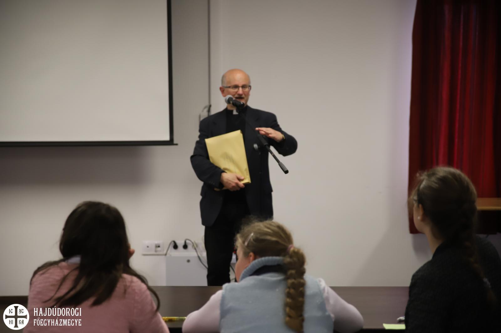 A Nyíregyházi Egyházmegye hitoktatási vezetője Obbágy László atya emlékeztette a résztvevőket arra, hogy az idei hittanverseny a NEK 2020 jegyében az Eucharisztiáról szól. Ennek kapcsán lelki útravalóként azt mondta: az átváltoztató Krisztusban Isten jött közénk, akiben már a keresztségkor elkezdődött az örök életünk.