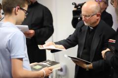 Az általános iskolásokat Atanáz püspök atya is köszöntötte, felidézve Szent Pált. Az apostol arra figyelmezet minket, hogy a versenyzők önmegtartóztató életet élnek, vagyis edzenek, ahhoz, hogy győzzenek. De az apostol hozzáteszi, hogy a díjat egy nyeri el. „Úgy fussatok, hogy elnyerjétek”. A hittanverseny szervezői most több díjat is tartogatnak nektek – mondta Atanáz püspök –, de az elv ezen a napon is érvényes: imádsággal, önfegyelemmel és felkészültséggel kell nekifutni a versenynek.