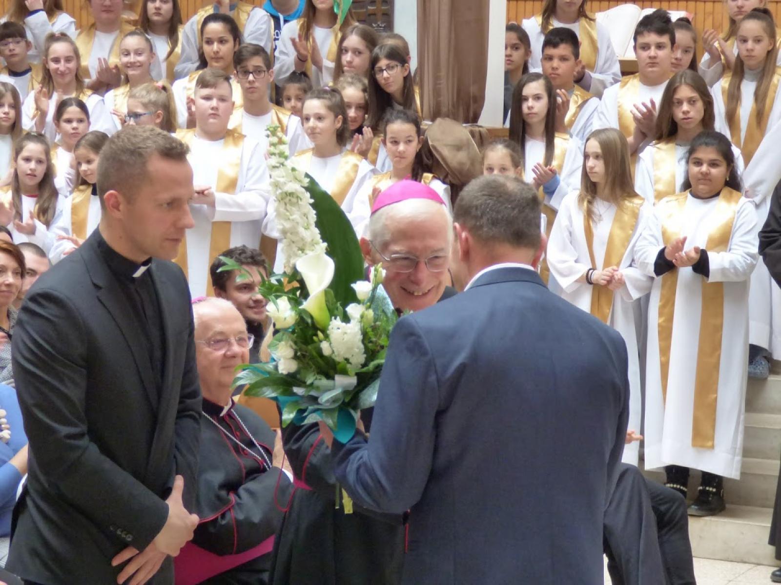 Az iskolába érkező szentszéki nagykövetet Orosz Atanáz püspök mellett Ternyák Csaba érsek, Bánné dr. Gál Boglárka, a megyei közgyűlés elnöke, Edelény város vezetésének képviselői és természetesen egyházmegyénk papsága és intézményvezetői is fogadták, az edelényi iskola énekkara és a rakacaszendi tagiskola tanulói kis műsorral köszöntötték.