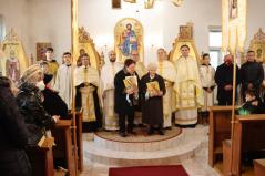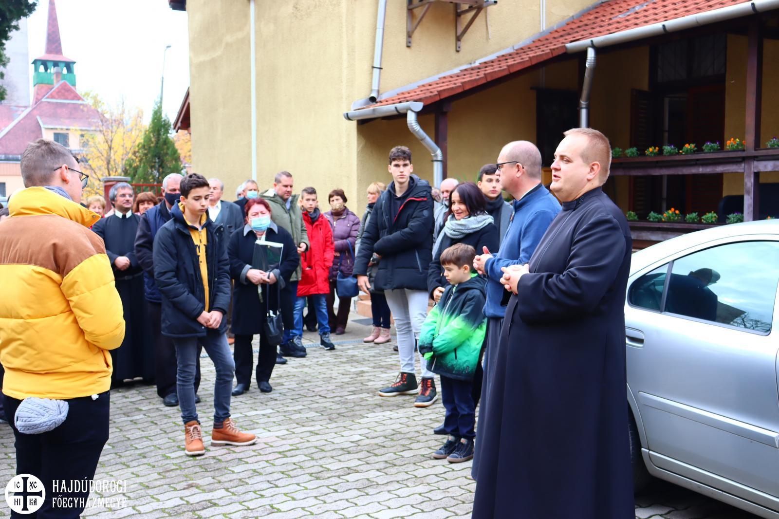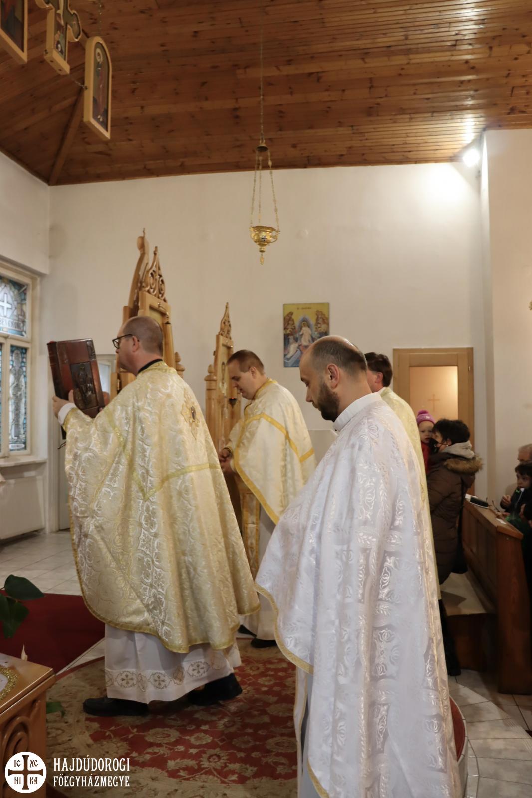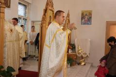 A méltóképpen megünnepelt Liturgia végén József parókus atya köszöntötte a híveket, az ide látogató bazilita Izsák, Mihály és Andrej atyákat, és unokatetvéreként is köszönetet mondott dr. SesztákIstván atyának, akit bokros teendői végre nem akadályoztak meg abban, hogy Kispestre látogasson.