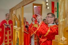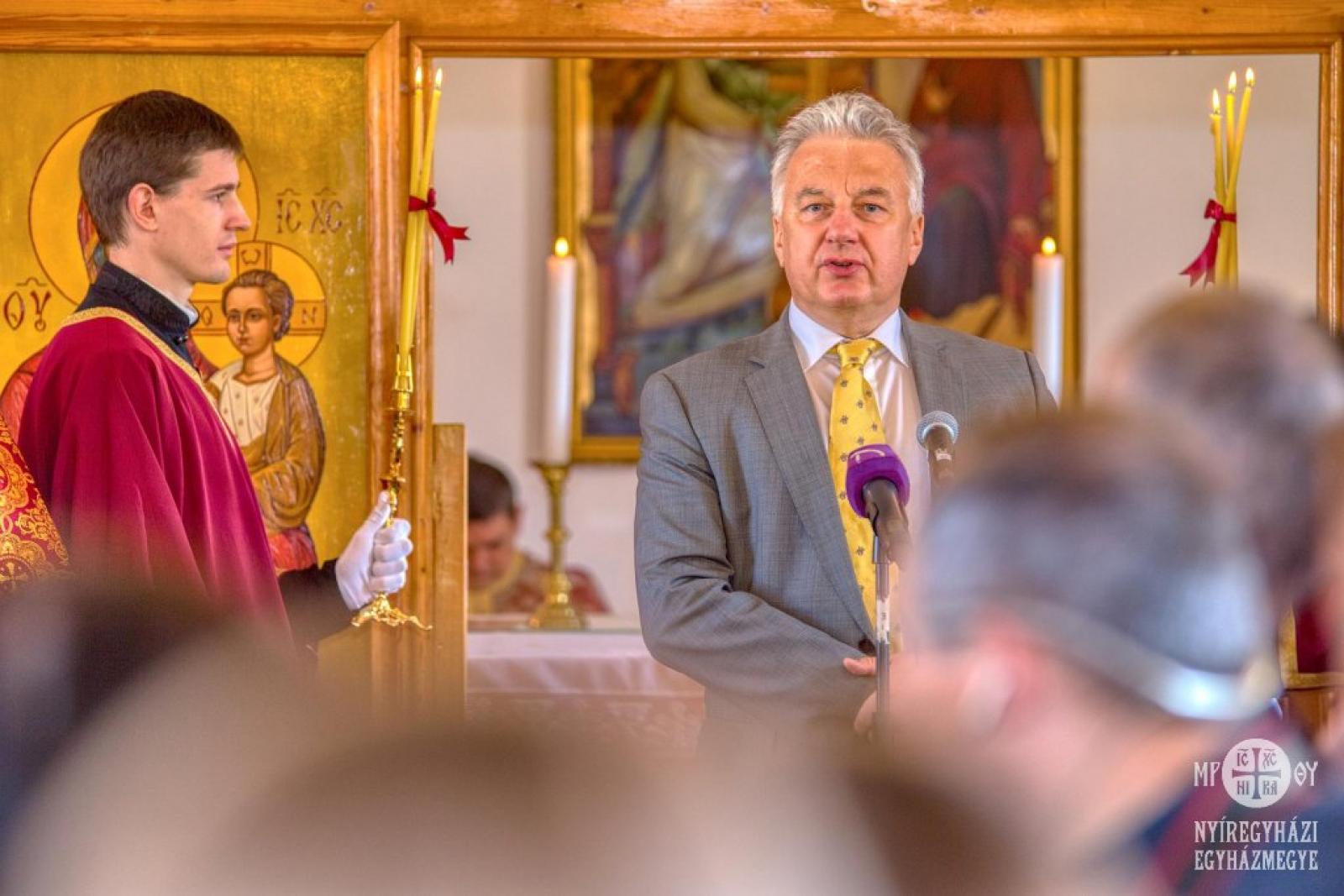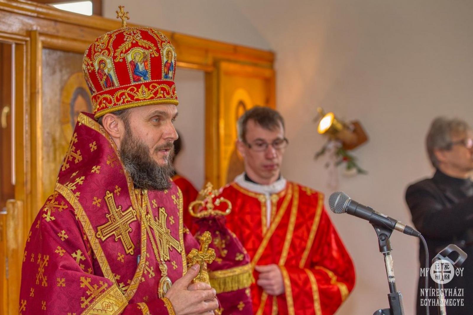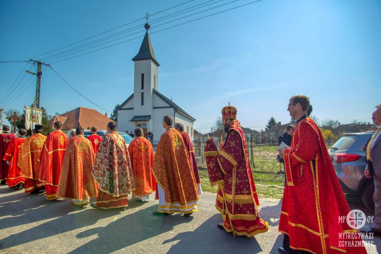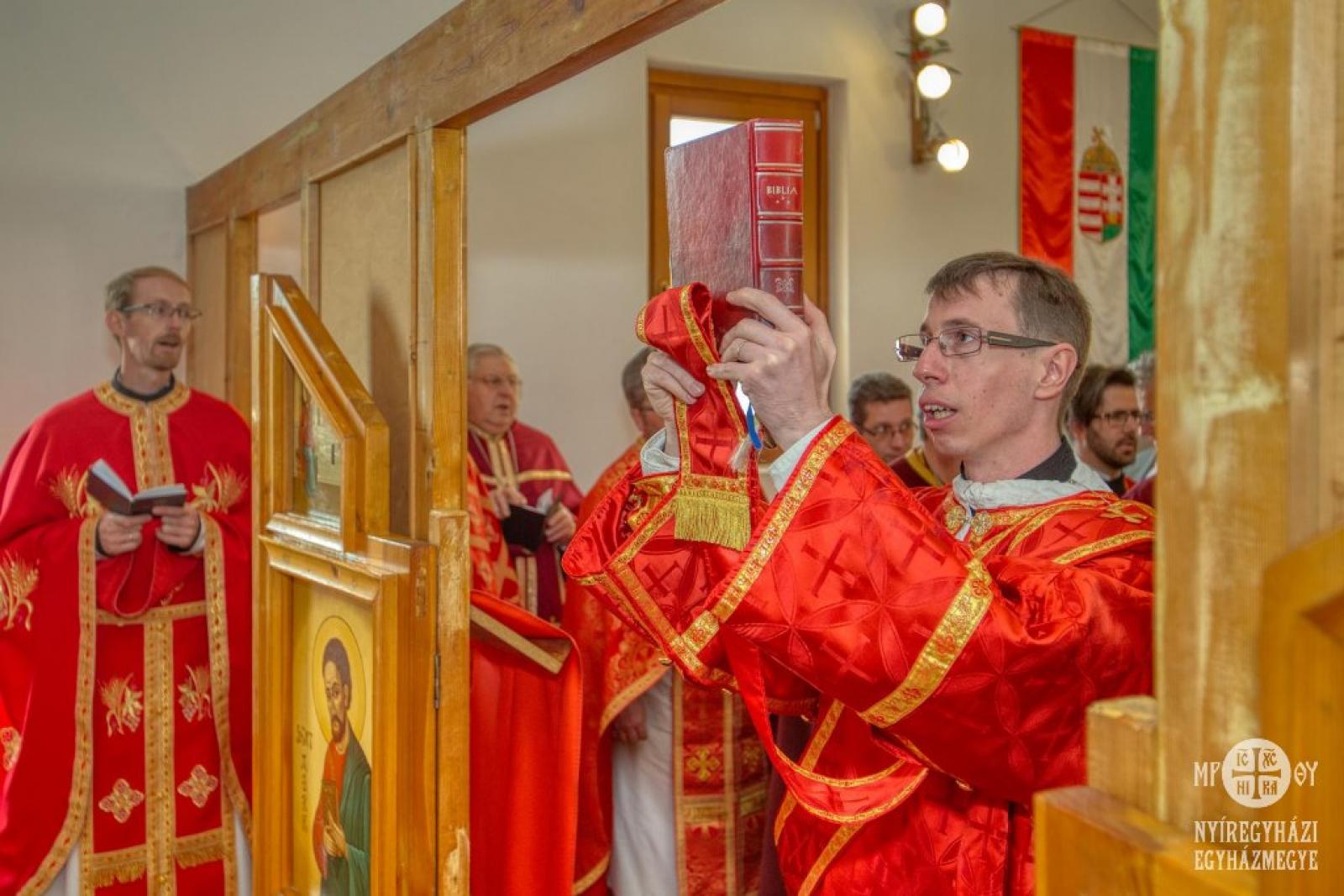 A Szent Liturgiát Szocska A. Ábel a Nyíregyházi Egyházmegye püspöke celebrálta, mellette az oltár körül főhelynöke, dr. Papp Tibor atya, a házigazda, Kiss Andor esperes, a kerület papsága és meghívott görögkatolikus lelkipásztorok szolgáltak. A kormánytámogatás segítségével, kívülről rendbe hozott kis templomot Ábel püspök szentelt vízzel hintette meg, majd a kereszt alakban megjelölt kapun bevonult az ünneplő közösség.