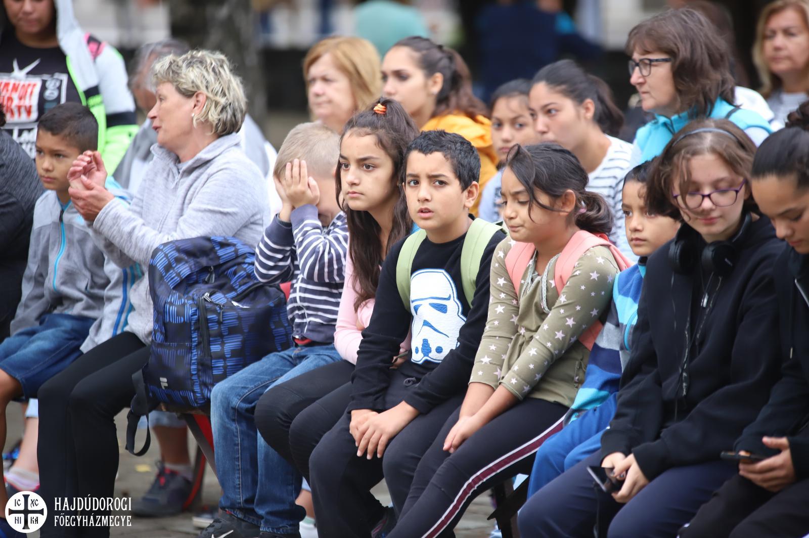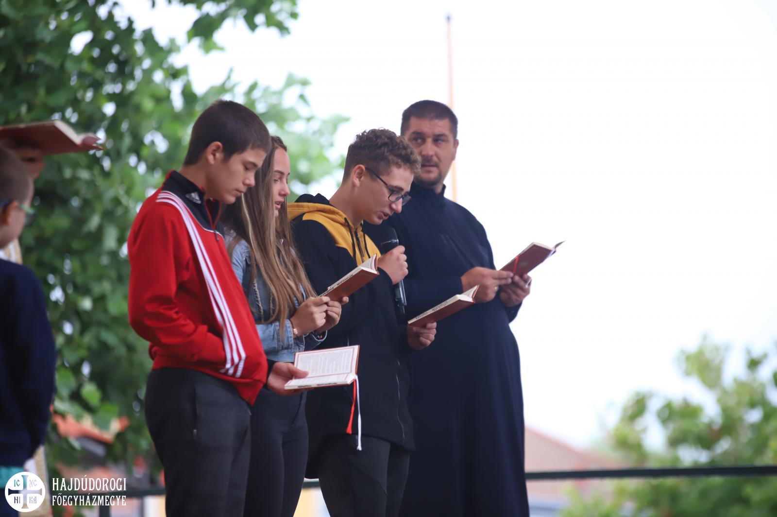 Idén a Debreceni és Nyírségi Görögkatolikus Gyermekvédelmi Központ, a Hajdúsági Görögkatolikus Gyermekvédelmi Központ, a Szent Miklós Gyermekvédelmi Intézmény és a Szent Zotikosz Gyermekvédelmi Intézmény lakói és gondozottjai vették birtokba a Kegytemplom előtti teret.