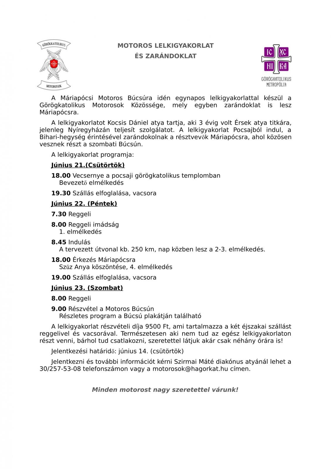 Motoros lelkigyakorlat és zarándoklat