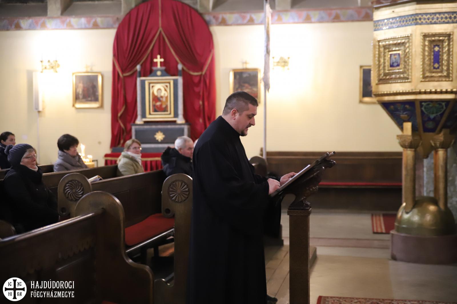 Órákon át tartó havazás érte el pénteken Debrecent, ennek ellenére az Attila téri Főszékesegyházban szép számmal voltak jelen a testvérek, akik a liturgia részeként böjti imádságokat énekeltek. A szertartást az apostoli kormányzó, Kocsis Fülöp metropolitával közösen tartotta és szolgálatot teljesített még Nyirán János fődiakónus.