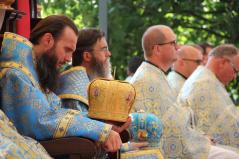 Ma reggel a templom előtti tér már hatkor imádságtól volt hangos. A szláv liturgiát követően utrenye, majd a teremtésről szóló katekézist tartott Bubrik Miklós atya. 11 órakor az ünnepi Szent Liturgiát együtt végezte Fülöp érsek atya, Atanáz és Ábel püspök atyák.