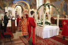 A vecsernye végén Kocsis Fülöp metropolita megtömjénezte az oltárra terített, Krisztus testét ábrázoló plascsenyicát (sírlepel), amit aztán a magasba emelve vittek körbe – idén csak a főszékesegyházon belül, ugyanis a koronavírus-járvány miatt elmaradt a körmenet. Majd ezt a liturgikus kendőt elhelyezték a virágokkal díszített szentsíron. A templom egész éjjel nyitva lesz, idén azonban metropolita atya külön kérte a híveket, hogy ne érintsék meg a leplet.