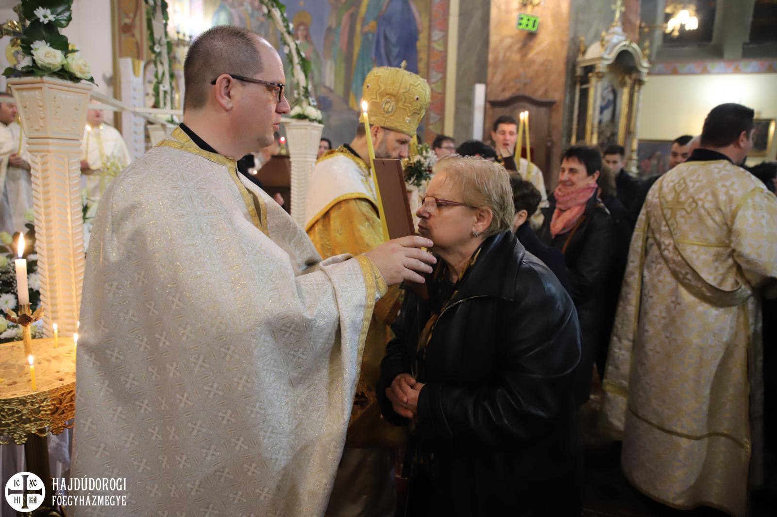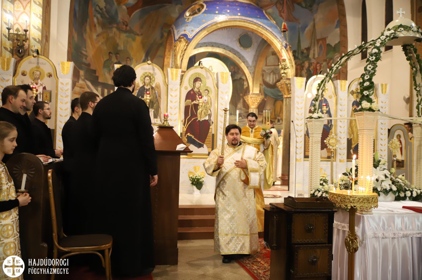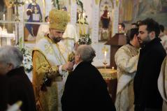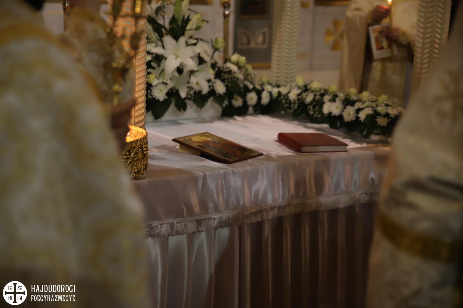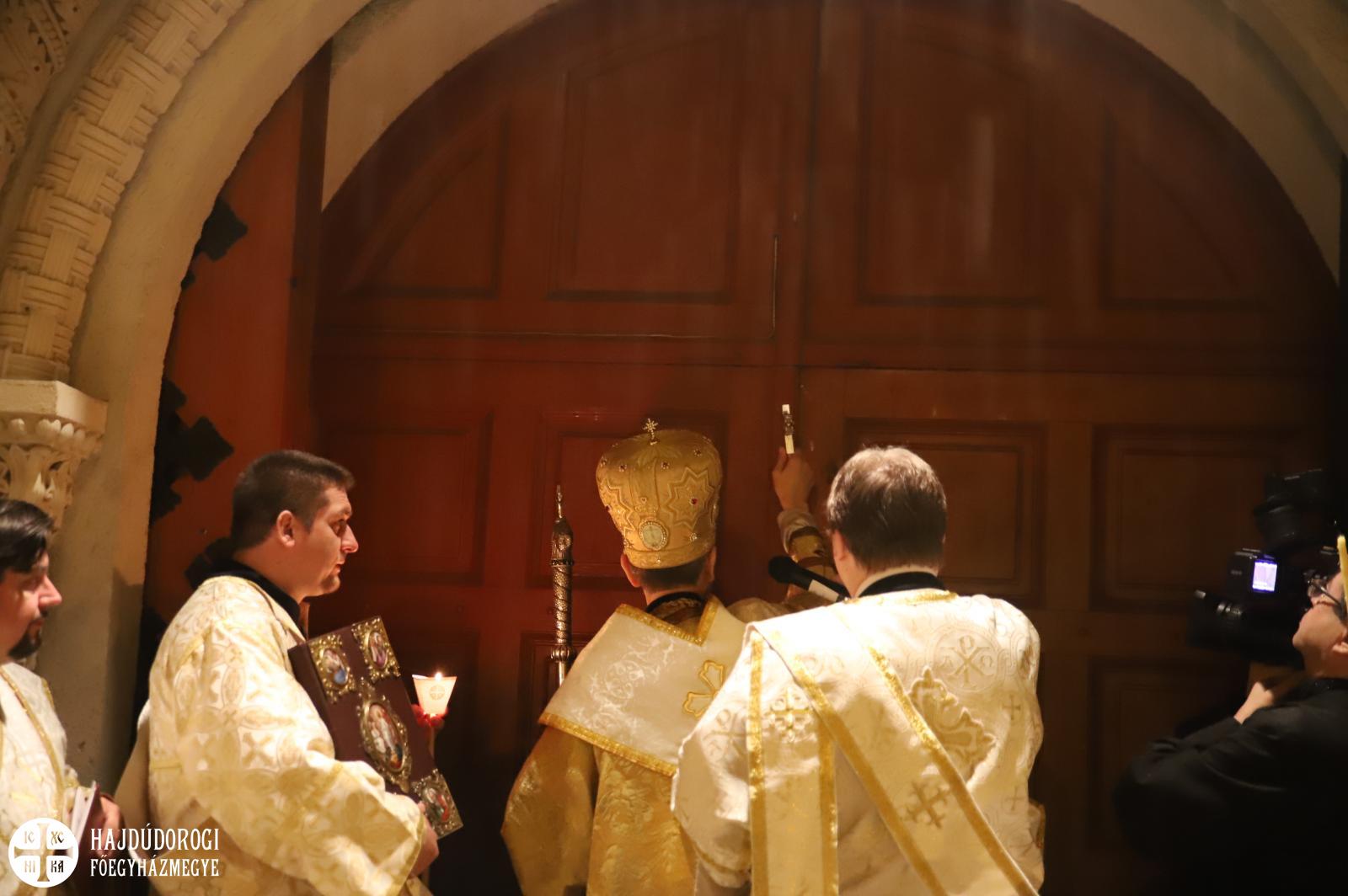 Ezt követően azonnal kezdődött a püspöki Szent Liturgia, melynek során a testvérek - tiszteletük kifejezéséül - elsőként a Bibliát, aztán a keresztet és végül egy Jézust ábrázoló ikont csókoltak meg a „Feltámadt Krisztus! Valóban feltámadt!” köszönés kíséretében. Majd a metropolita felolvasta Aranyszájú Szent János hittanító beszédét, ami a Krisztussal való teljes közösség megújítására hív.