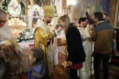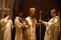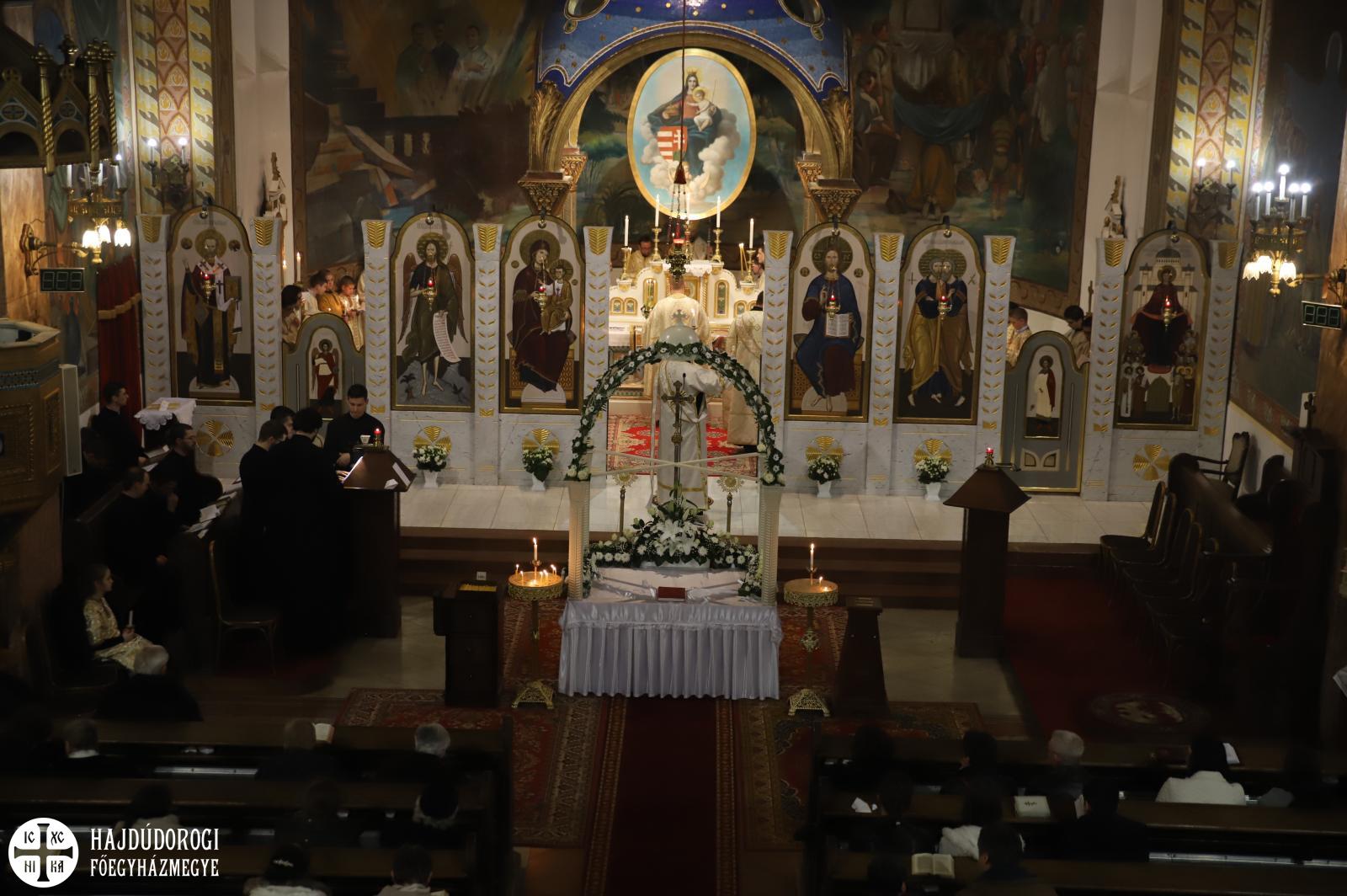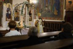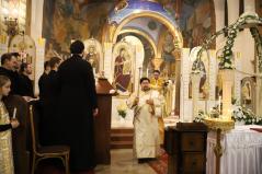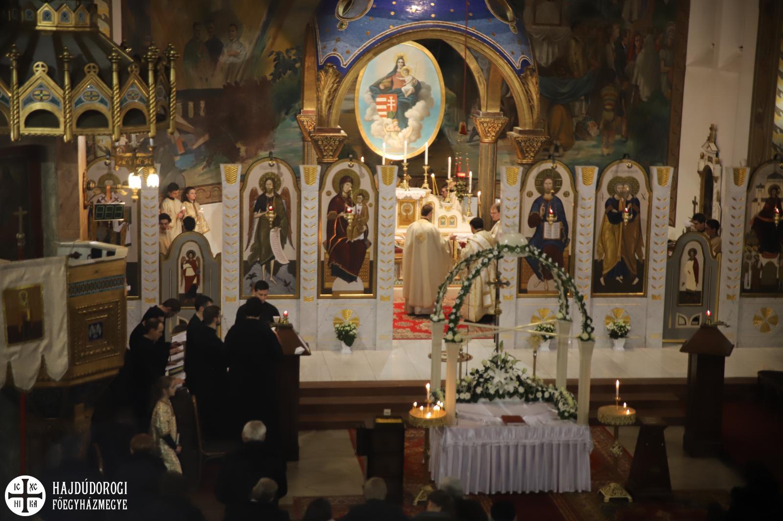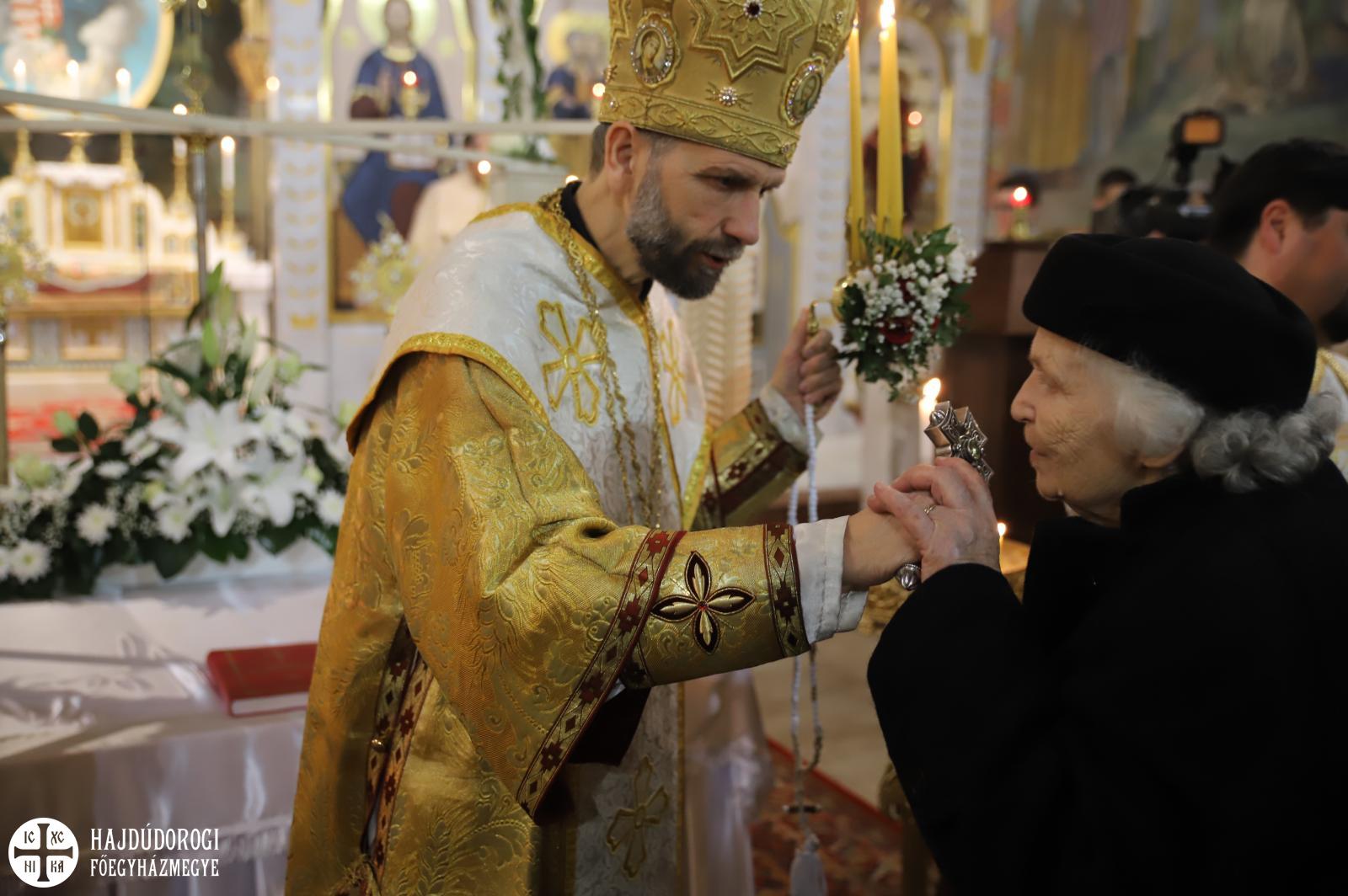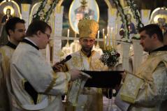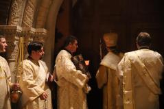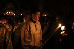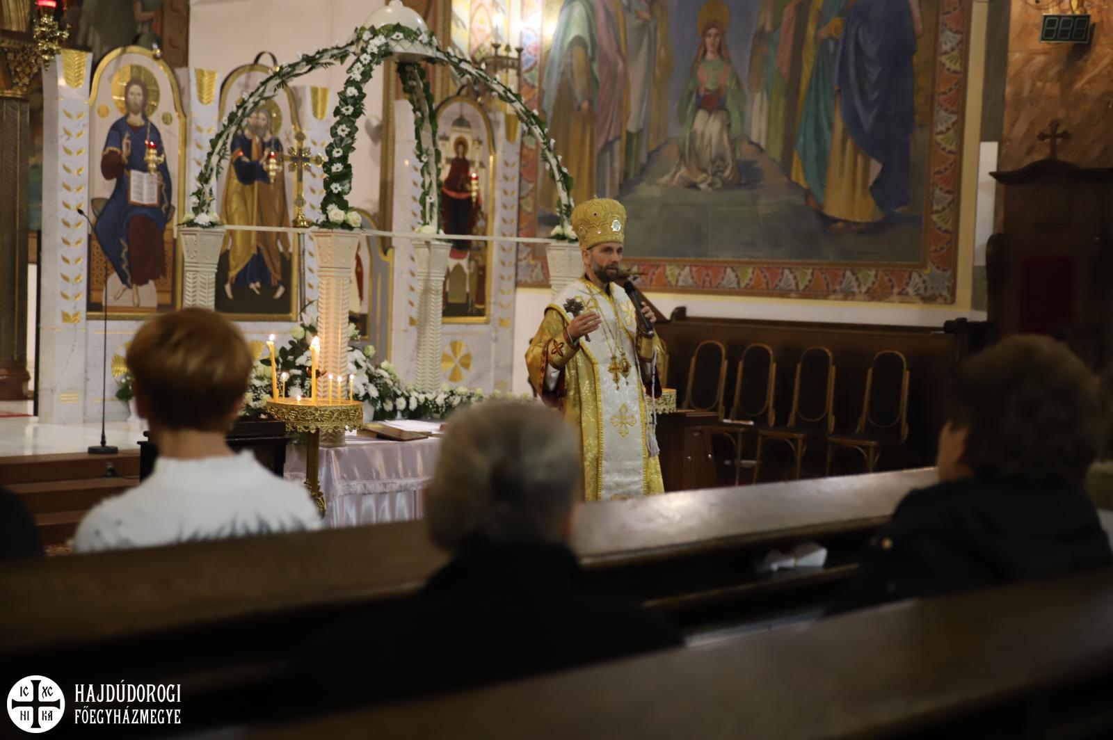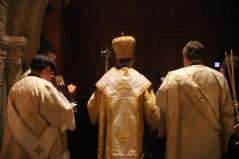Ezt követően azonnal kezdődött a püspöki Szent Liturgia, melynek során a testvérek - tiszteletük kifejezéséül - elsőként a Bibliát, aztán a keresztet és végül egy Jézust ábrázoló ikont csókoltak meg a „Feltámadt Krisztus! Valóban feltámadt!” köszönés kíséretében. Majd a metropolita felolvasta Aranyszájú Szent János hittanító beszédét, ami a Krisztussal való teljes közösség megújítására hív.