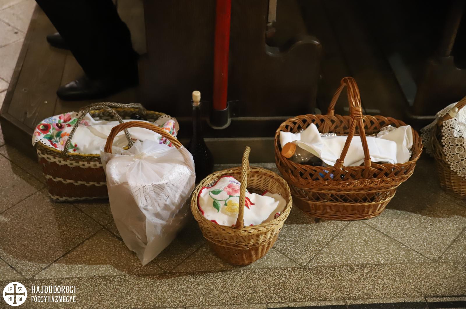 A szertartás végén pászkaszentelést tartottak, amikor szentelt vízzel hintették meg a kosarakban lévő élelmiszereket.