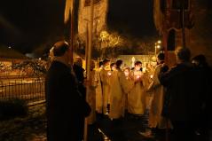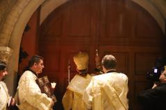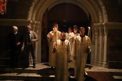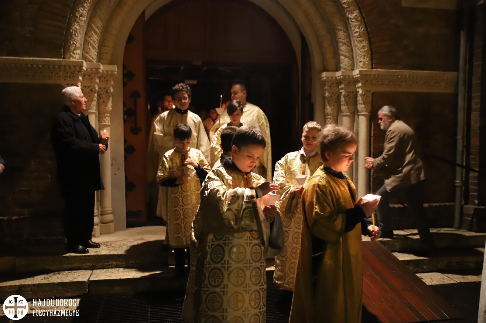 Az Egyház legfontosabb ünnepe a Húsvét. A húsvéti feltámadási szertartás a Nagyszombati éjféli istentisztelettel kezdődött. Kocsis Fülöp érsek atya a szent sírban lévő síri leplet megtömjénezte, és az oltárra vitte. Ez a cselekedet jelezte Krisztus feltámadását. A mennybemenetel ünnepéig a lepel az oltáron kiterítve marad. Egyszerűen rajta végzik a szertartásokat, mint egy terítőn.