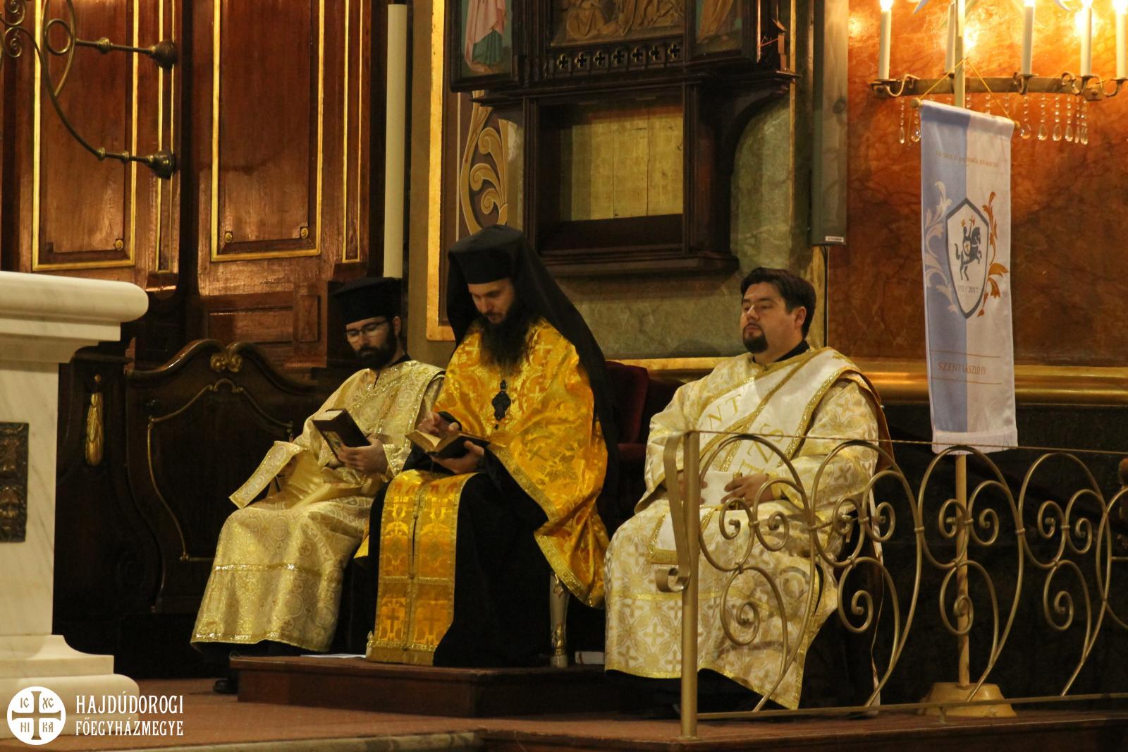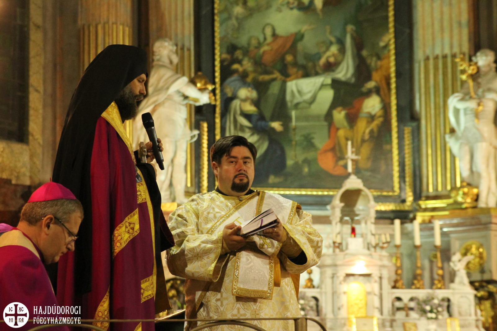 Szocska Ábel atya a szentekről beszélt. Mi emberek ugyanis sokszor fordulunk hozzájuk, hogy kérjük az ő segítségüket, közbenjárásukat. Emellett van egy olyan képességük, hogy különleges kapcsolatot tudtak ápolni a jó Istennel. Szent László is nem csak azon fáradozott, hogy szent legyen, hanem hogy másokat is Isten elé vezessen. Jó példája ennek a mi zarándoklatunk is, hiszen most minket is ő vezetett ide. A szent eszközöknek pedig megvan az a képességük, hogy megszólítják az embert, Istenhez hívnak és vezetnek minket. Ennek kapcsán mondta el, hogy hozott magával valamit. Érsek atyának tartozott egy dologgal, amit most szeretne pótolni. Rábízott ugyanis korábban valamit: egy kis harangot, hogy készíttessen hozzá egy foglalatot. Amikor a Metropólia Hivatalát megáldották, akkor szerette volna átadni ezt az ajándékot, de most hozta magával. A hivatali székházban, ahogyan a mai estén Szent László hívott bennünket, úgy a harangszó is hívni fogja majd az ott dolgozókat, hogy ők is közeledjenek Istenhez – majd a Mária Rádió hallgatóira is gondolván, megkongatta a harangot. Végezetül azt mondta: "kívánom, hogy egész katolikus egyházunknak adjon a jó Isten nagyon sok szentet, akik ezreket vezetnek majd az Isten színe elé."