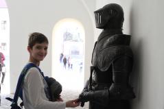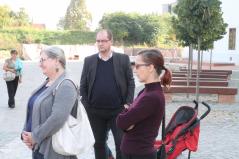 Megmutatta többek között Szent László király kőszobrát a római katolikus bazilika kertjében. Az egykori múzeum kertjében elásott szobrot csak a rendszerváltást követően merték előásni. Szacsvay Imre szobrához is elvitte a csoportot, a mártírhalált szenvedett nemzeti hős szobrának felirata: Csak egy tollvonás volt a bűne. Ugyanis 1848-ban Váradolaszinak és Újvárosnak volt országgyűlési képviselője, és mint a függetlenségi nyilatkozat szövegezőjét és aláíróját 1849-ben őt is kivégezték. A főtéren benéztek még a görögkatolikus székesegyházba is.