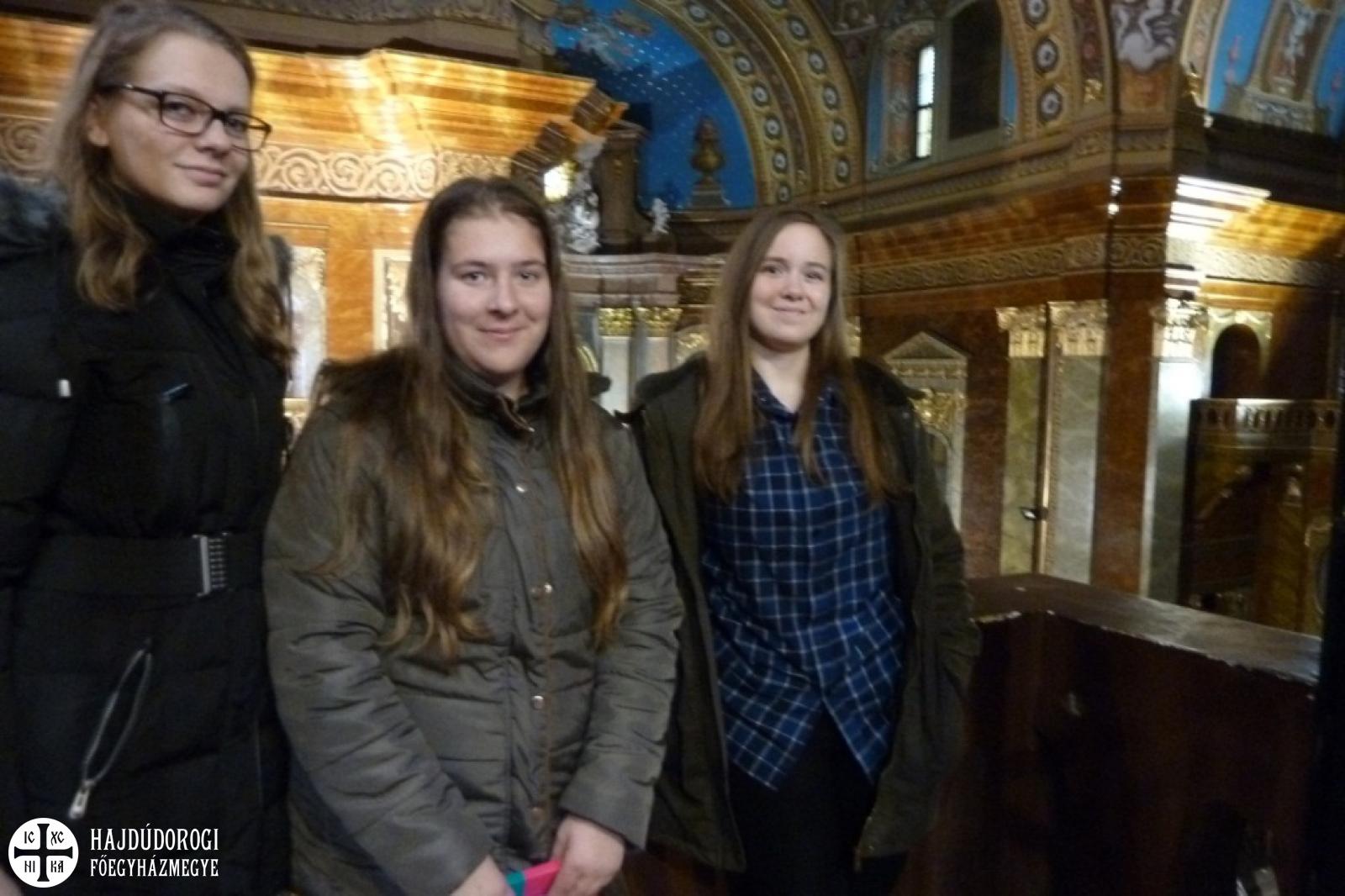 A templomban egy kedves idegenvezető hölgy mesélt nekik tovább, megmutatva a kiállított tárgyakat, majd megkapták a csapatok a feladatlapokat, amit Dr. Wolfné Vígh Dóra tanárnő állított össze. Ott még egyszer megnézhették a kiállított anyagot, válaszoltak a kérdésekre, és hazafelé az úton az eredményhirdetés is megtörtént: a 11. e. osztály csapata volt a legügyesebb. Olyan szoros versenyben, ahol az első és az ötödik helyezet csapat között 3,5 pont volt a különbség. Jó volt látni a gyerekek lelkesedését, szorgos kutató munkáját.