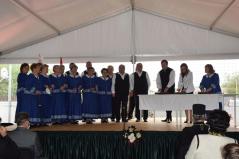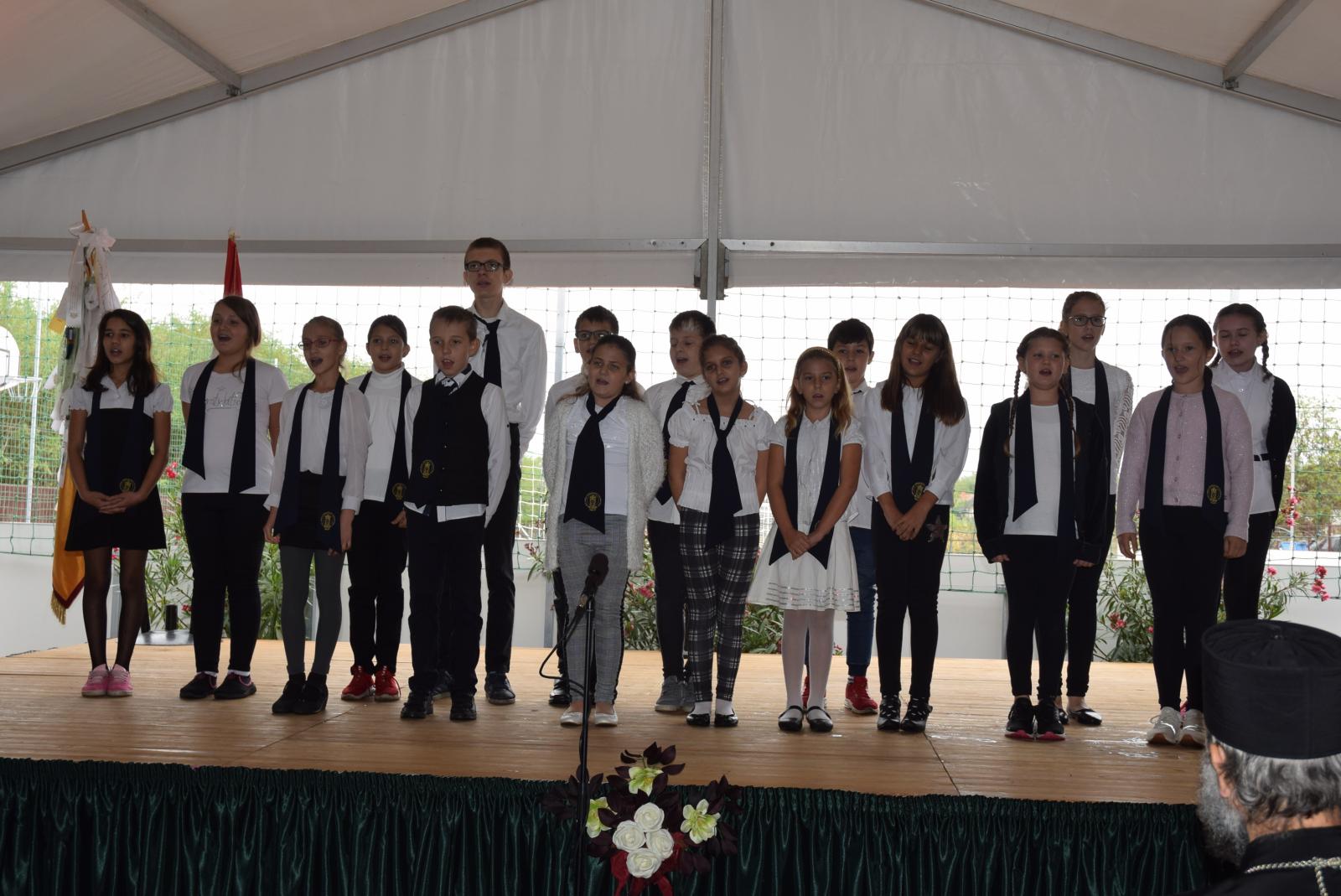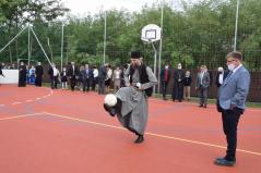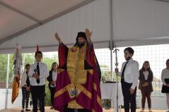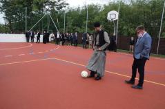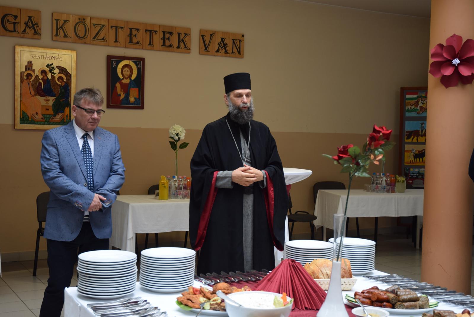 Az ünnepség elején Kocsis Fülöp érsek-metropolita felszentelte a pályát, majd az eső elől biztonságot nyújtó sátor alatt végzett szentelő szertartást, ahol Tatai Zoltán iskolalelkész liturgikus énekkara is részt vett.