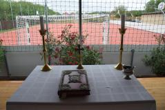 Érsek atya Zakeusról olvasott példabeszédet, majd egy egyszerű kézmozdulatra invitálta a vendégeket. – Milyen egyszerűnek és természetesnek tűnik ez a mindannyiunk által könnyedén elvégzett kézmozdulat! Természetesnek tűnik, és bele sem gondolunk, milyen hatalmas ajándék ez az apróságnak tűnő dolog! Ezeket az apró dolgokat éppen úgy meg kellene köszönni a Jóistennek nap mint nap, mint a nagyobb dolgokat, mint például az imént felszentelt pályát – hívta fel a figyelmet érsek atya a köszönet fontosságára, majd folytatta beszédét.