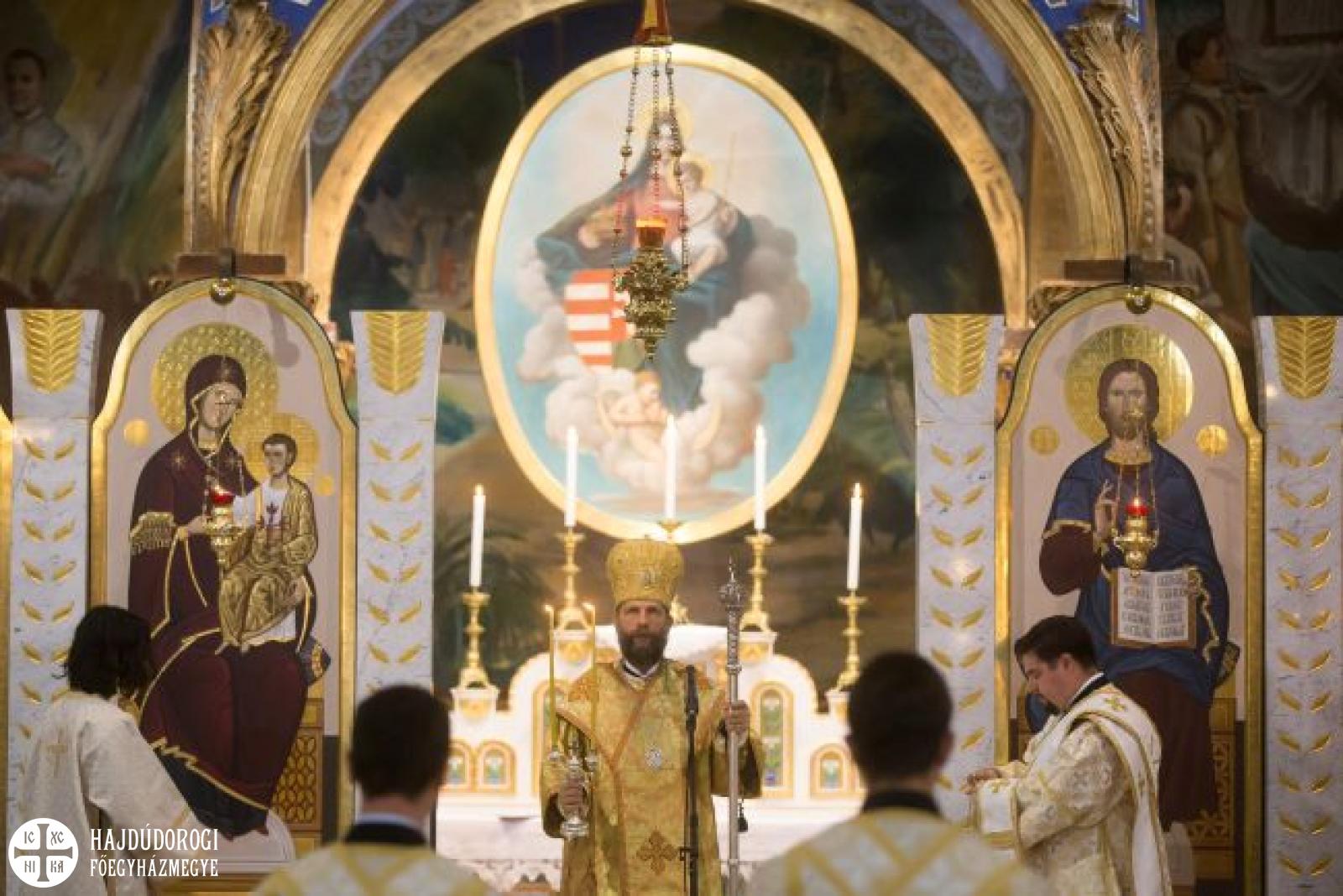 A Liturgia elején két evangélium is elhangzott, a szőlőt ültető gazda története és a nyolc boldogság meghirdetése. Kocsis Fülöp metropolita atya emlékeztette a hallgatóságot, hogy szeptember 3-a Szent X. Piusz pápa napja, a hajdúdorogi egyházmegye alapítója, s az ő tisztelete miatt hangzott el a nyolc boldogság evangéliuma. Majd az egyházfő a szőlősgazda történetét magyarázta: egy ember szőlőt ültetett, azt bekerítette, a művelésre munkásokat fogadott, akik aztán a gazda fiát is megölték, amikor termésért ment. – Szörnyű, de ma is igaz történet, amiben a gazda maga az Isten, a kert a világ, ahol élünk, a munkások pedig mi magunk vagyunk, akik sokszor elfordulunk Isten küldötteitől, ellenkezőjét tesszük annak, amit Isten kíván tőlünk, sőt, végül bűneinkkel még a Fiát is megöljük. Isten fia azért halt meg, mert elfordultunk tőle. Nagypéntek után viszont jön a feltámadás. De az Atya nem tesz ezért szemrehányást. Ő sohasem aláz meg, soha nem a rosszról beszél, hanem mindig arra mutat rá, hogy mindenen keresztül az ő szeretete sugárzik ránk. A sátán az, aki gonoszságára mutat. Éppen azért, hogy a reménytelenséggel elsötétítse látásunkat. Ám sötétség nem létezik, hiszen az csak a fény hiánya. Így gonoszság sem ltezik, az meg a szeretet hiánya. Töltsük meg fénnyel a mai szeretethiányos világunkat, mégpedig úgy, hogy saját életünkben, önmagunkban és környezetünkben kezdjük el. Ezt várja tőlünk Isten.