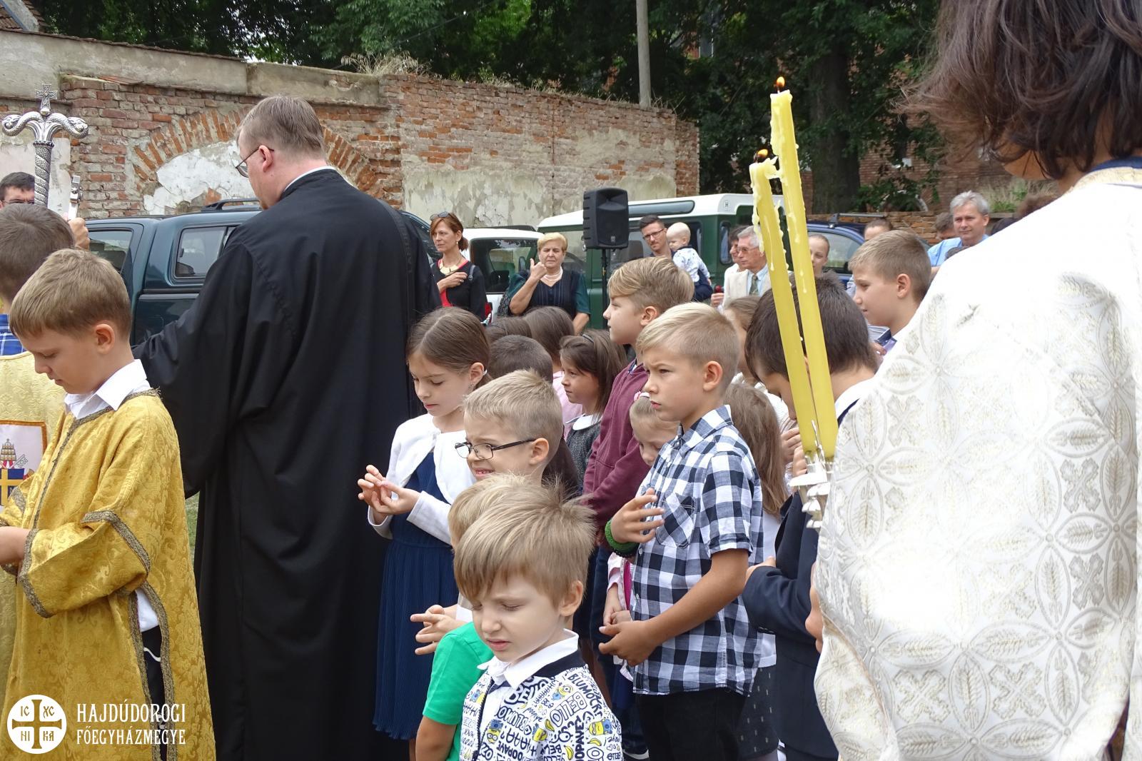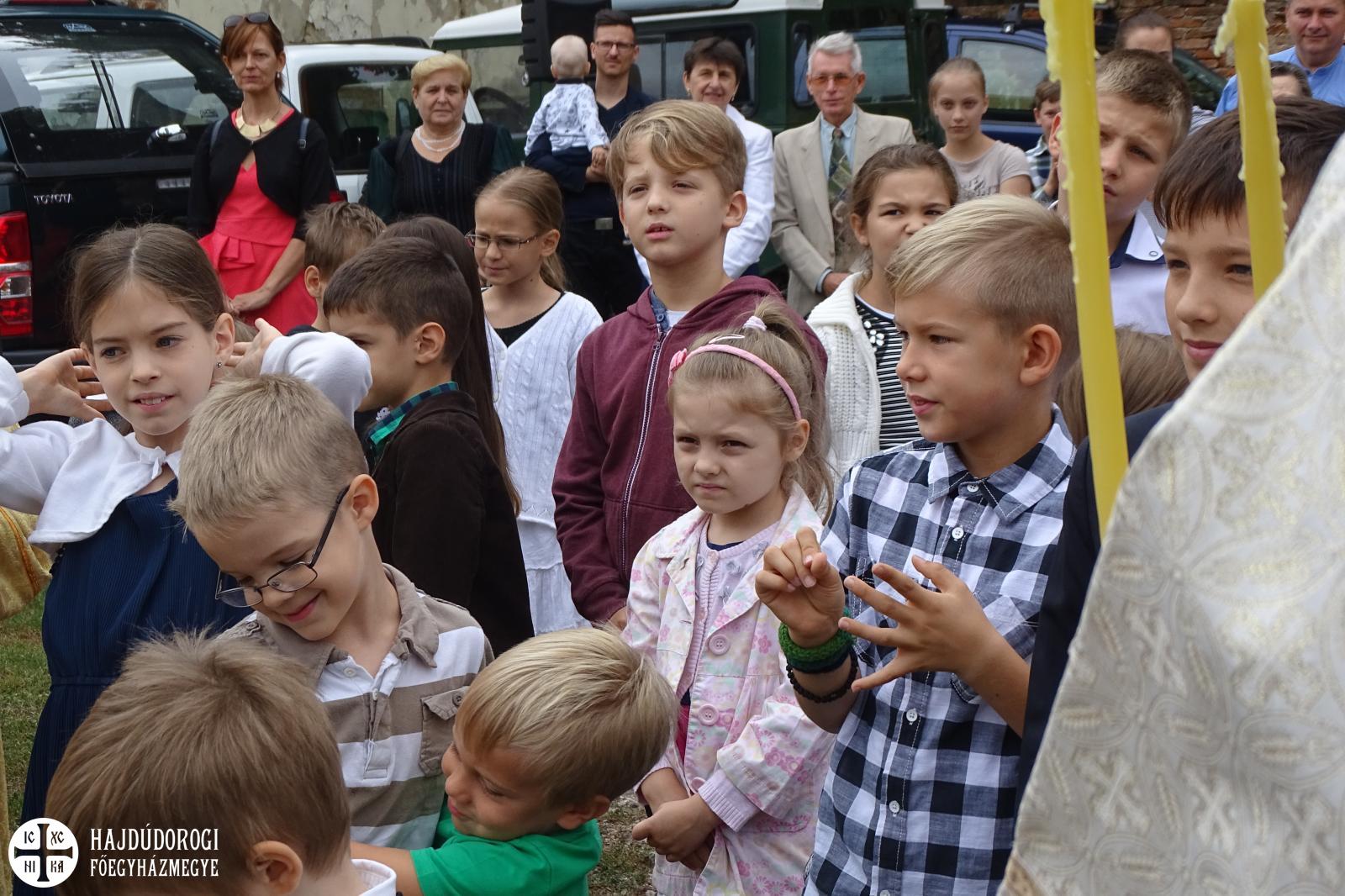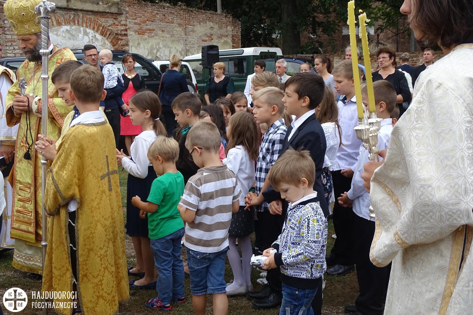 A Liturgia végén a gyermekek és pedagógusok tanévkezdő áldásban részesültek. Majd közösen átvonultak a szomszédes telekre, ahol a metropolita megáldotta az újonnan elkészült játszóteret.