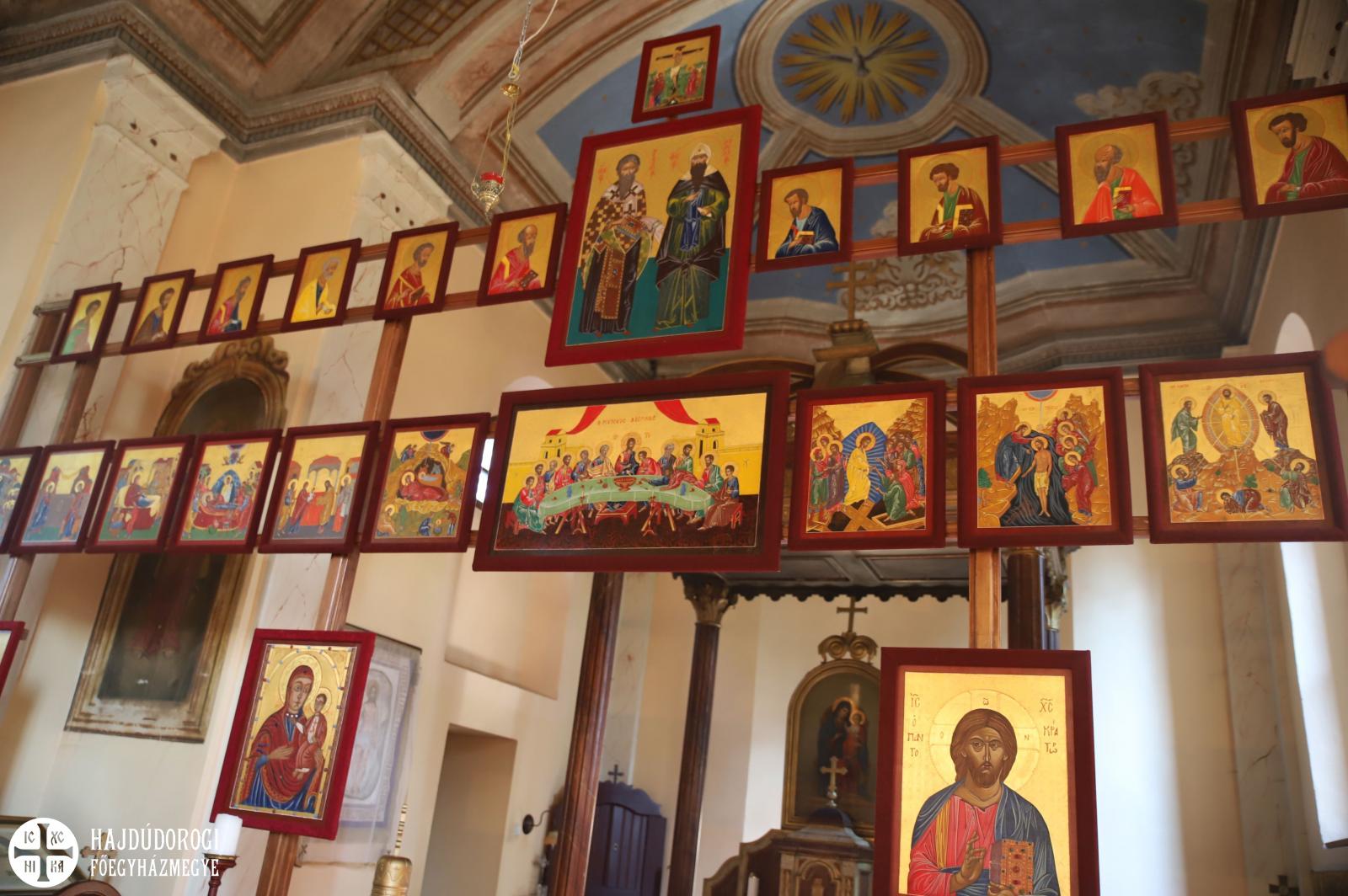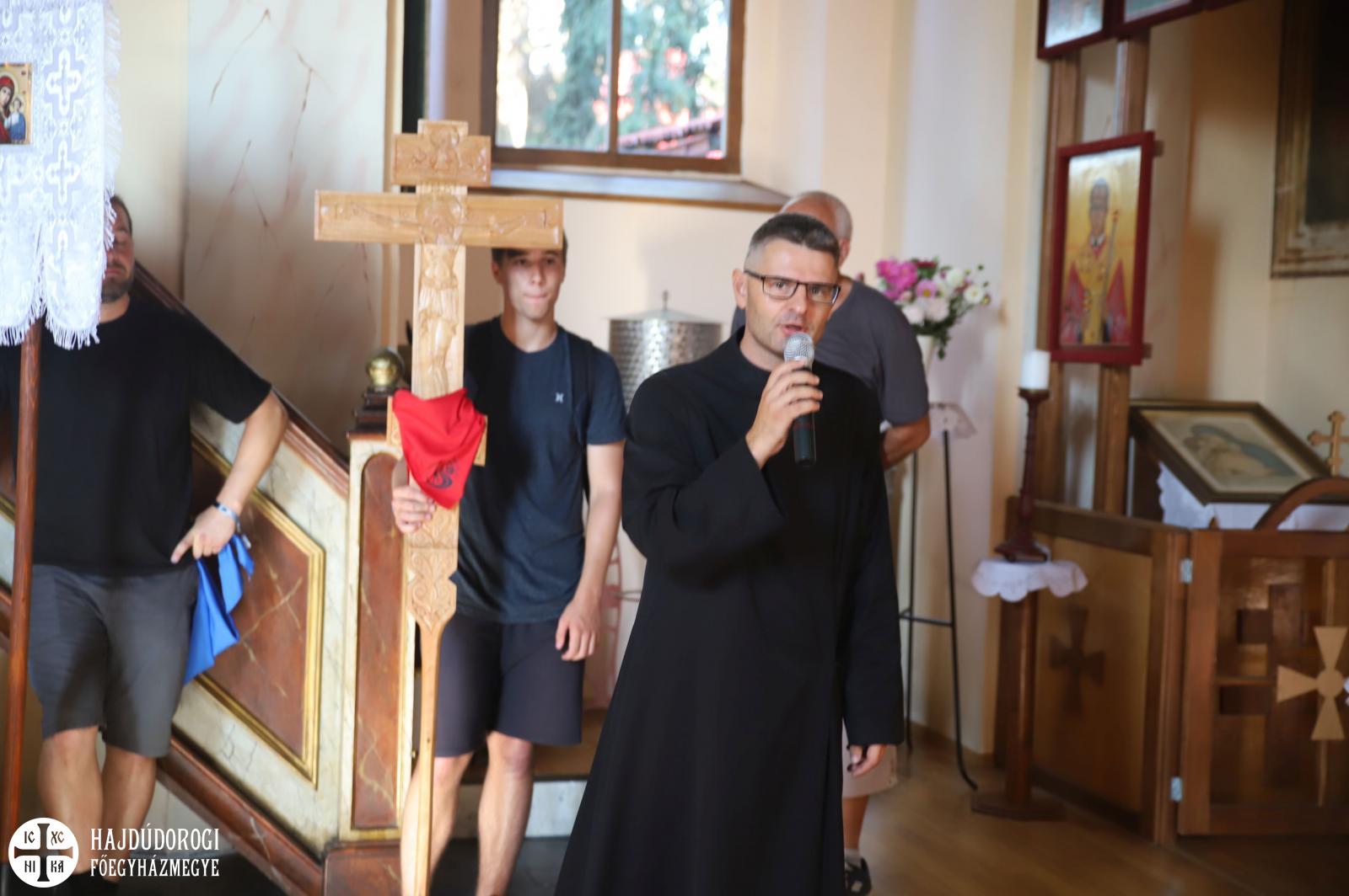 Egy rövid imaóra után indult tovább a menet, és már a határt átlépve Dámócon állt meg ismét. A kis borsodi település főpásztoraink számára különösen kedves hely, hiszen Fülöp érsek atya nyolc évig, Atanáz püspök atya pedig kilenc évig élt itt szerzetesként. Utóbbi tartott elmélkedést a templomban, ahol Káin és Ábel történetén keresztül mutatott rá arra, hogy a haragnak mennyire nincs helye életünkben.