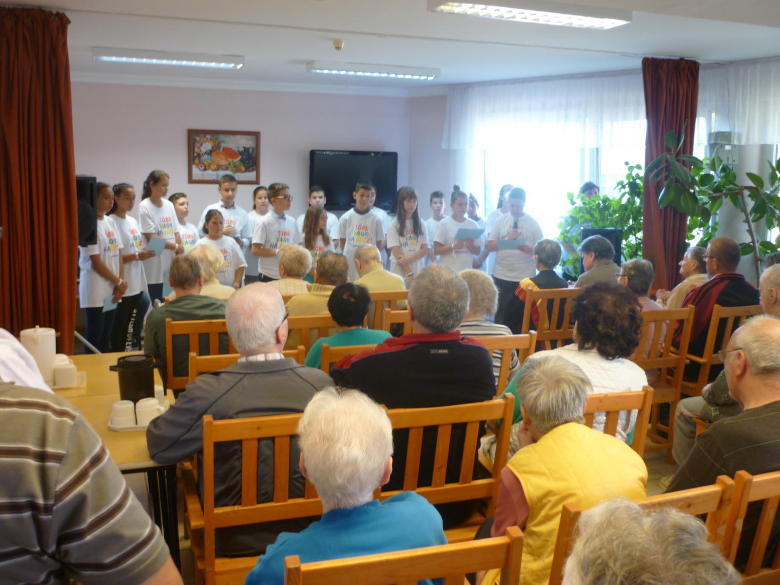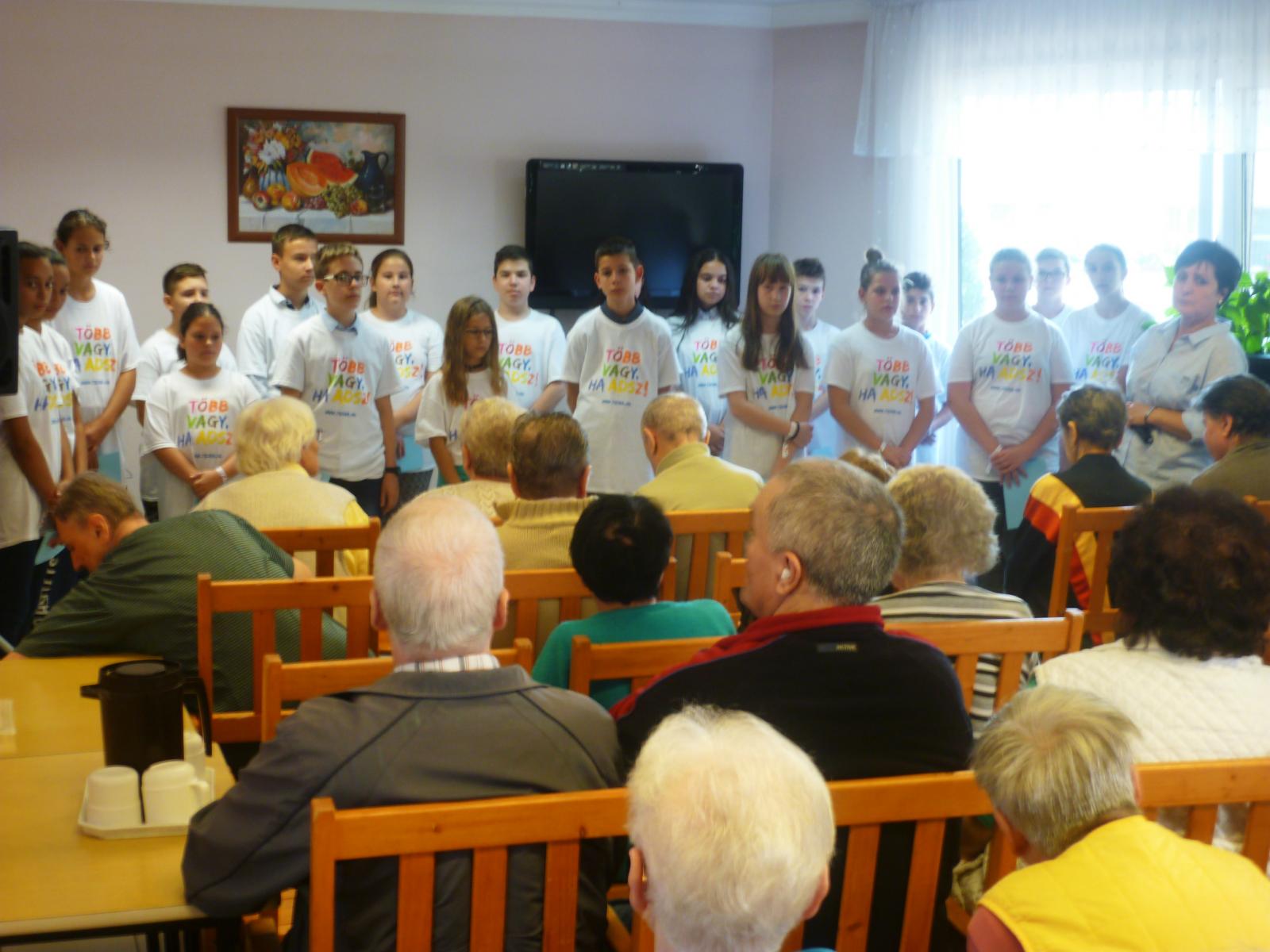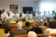 Egy osztály a tavalyihoz hasonlóan az Ápolási Otthon lakóinak kedveskedtek színvonalas, megható műsorral, mely többek szemébe csalt könnyeket. Aktualitását az adta, hogy október elseje az Idősek napja volt. Már a következő találkozás időpontját is megbeszéltük az otthon vezetőjével.
