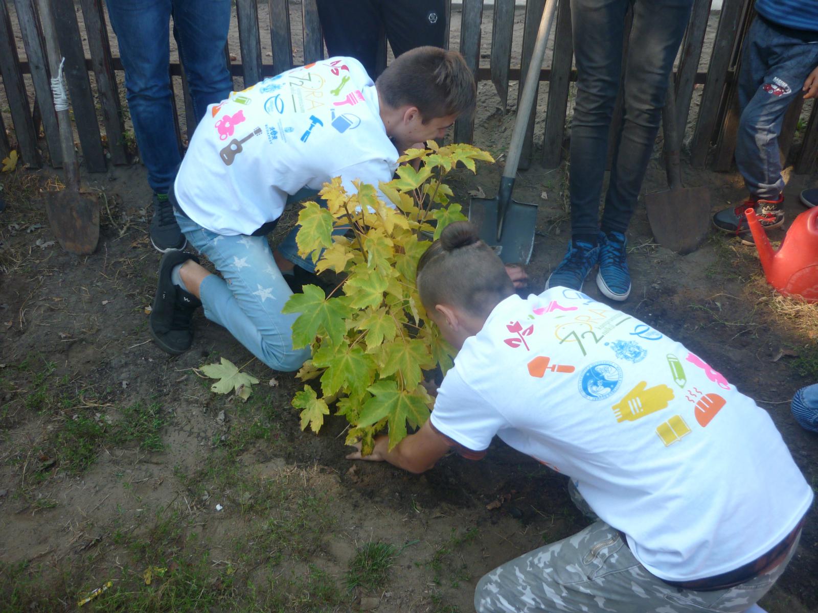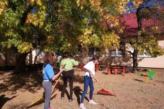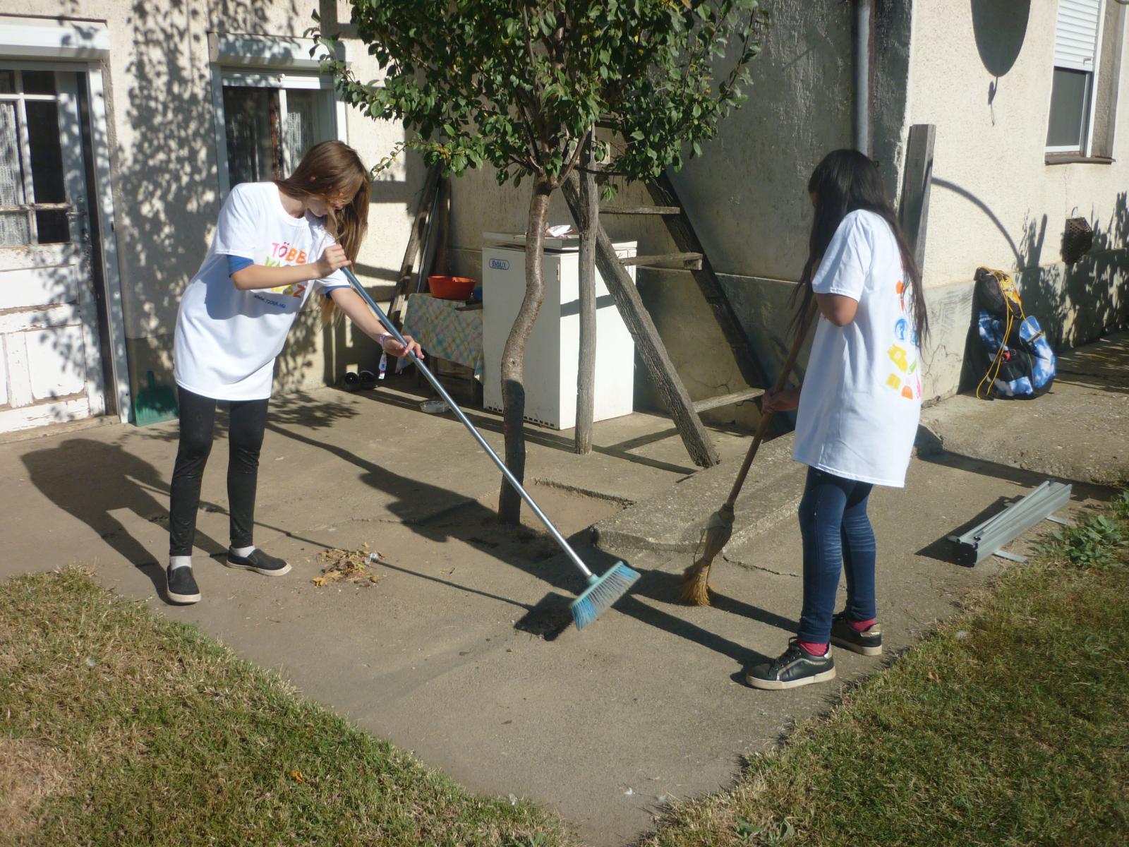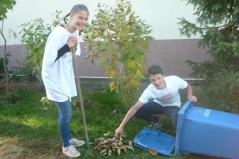 Az ötödik évfolyamos diákok az iskola és az óvoda termeit, udvarát takarították, szépítették. A verőfényes napsütésben vidáman, szorgalmasan dolgoztak, öröm volt nézni lelkesedésüket. Több osztály kisebb csoportokban, pedagógus vezetésével látogatott meg idős embereket és segítettek a ház körüli munkában. Volt, aki kukoricát pakolt, fát hordott be, de szükség volt az udvar takarítására, kiskert gyomlálására is. Jól eső érzés volt, ahogyan fogadták diákjainkat. Még a beteg nyugdíjas pedagógus kollégánk is kijött, hogy üdvözölje gyermekeinket.