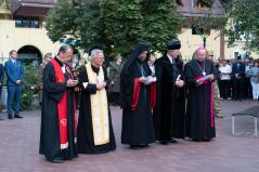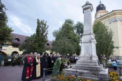 Az istentisztelet végén került sor a koszorúzásra, az emlékező, ünneplő gyülekezet együtt vonult át az Emlékkertbe. Harminc éve, 1991. augusztus 18-án II. János Pál pápa egyháztörténelmet írt, amikor személyesen helyezte el a protestáns gályarab prédikátorok emlékoszlopán a kiengesztelődés koszorúját. Ma az oszlop talapzatán egy bronzkoszorú emlékeztet bennünket a felekezetek közötti megbékélés és ökumenikus közeledés e fontos pillanatára. Emlékezve a három évtizeddel ezelőtti történelmi jelentőségű koszorúzásra, augusztus 17-én, a Debreceni Református Nagytemplomban megtartott ökumenikus igeliturgia után ismét megkoszorúzták a gályarabok emlékoszlopát. Az egység jeleként egy, közös koszorút helyezett el Gáncs Péter nyugalmazott evangélikus elnök-püspök, Kocsis Fülöp görögkatolikus érsek-metropolita, Palánki Ferenc római katolikus püspök és Fekete Károly református püspök.