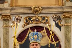 Szentbeszédében az érsek felidézte az 1700-as években ide telepedett görögkatolikus közösség templomépítésének történetét. A kétszáz évvel ezelőtt emelt kőtemplommal egy korábbi fatemplomot építettek körbe. A gyülekezet és a templom növekedésében fogalmazta meg a helyi magyar közösség folyamatos gyarapodását az elmúlt két évszázadban. „Az ember hivatása a növekedés, de ez csak akkor lehet teljes, ha együtt élünk Istennel” – foglalta össze igehirdetésének fő gondolatát.