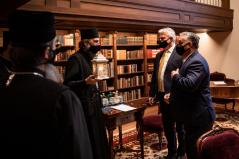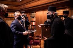 Miután megtekintették a fölújított épületet, amely az évszázadok során nem csak szerzetes ház volt, hanem számos egyéb feladatot is betöltött, Orbán Viktor miniszterelnök és Semjén Zsolt miniszterelnökhelyettes fogadta a görögkatolikus atyákat.
