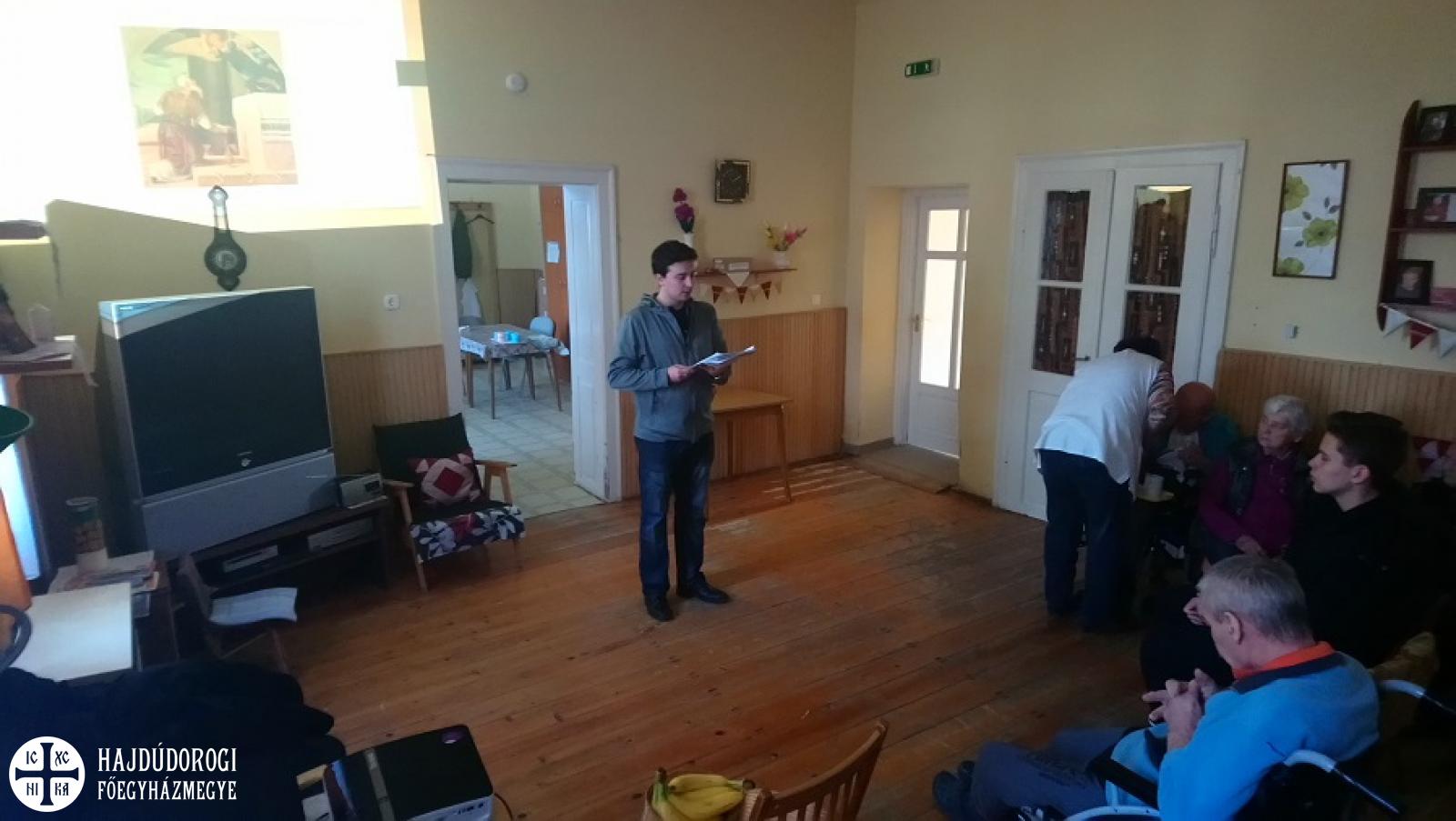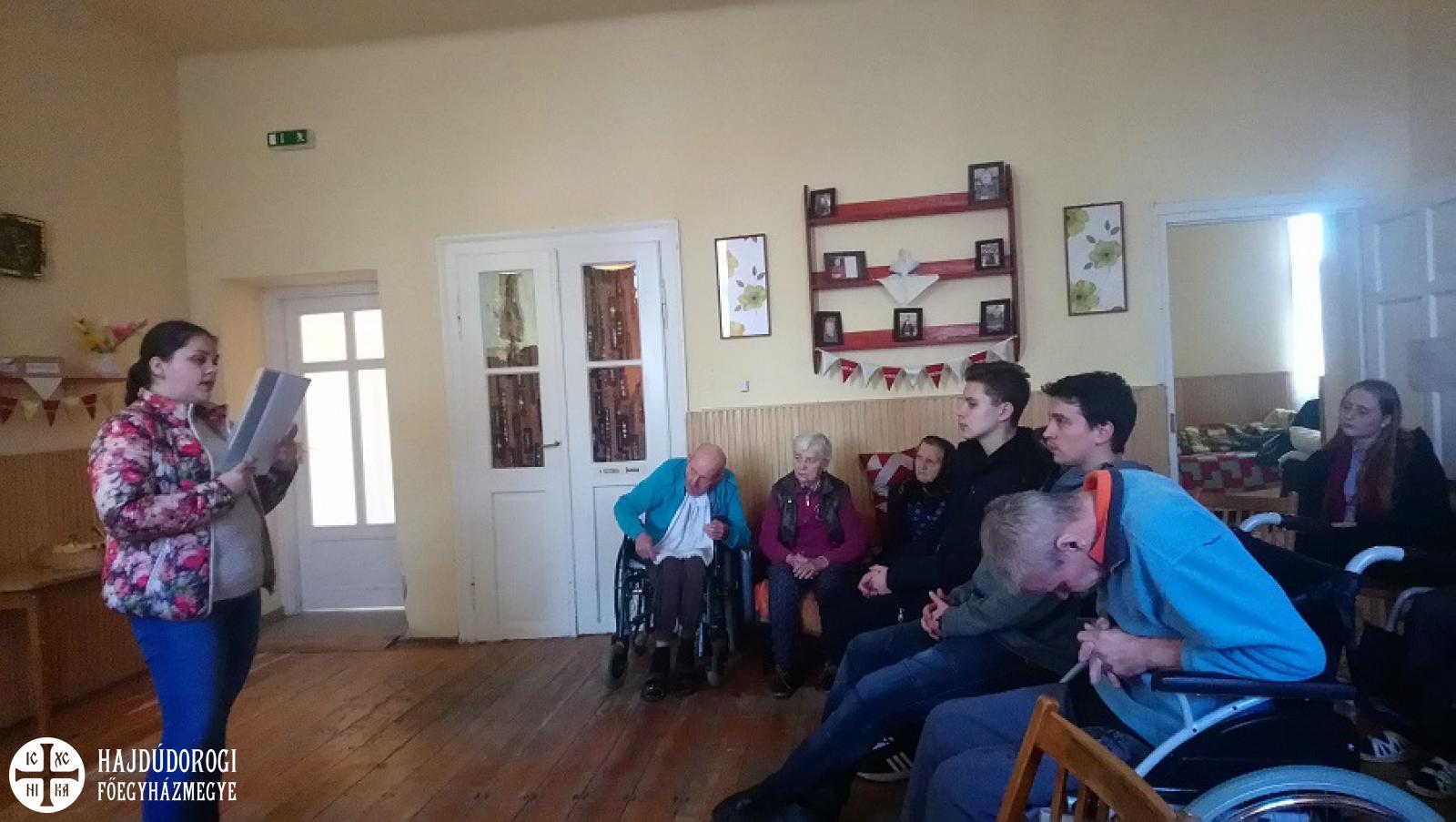 A nyíracsádi fiatalok 2017. november 25-én szombat délután meglátogatták a helyi idősek otthonát „Az örömhír délután” keretében. Céljuk az volt, hogy a karácsonyi készület idején a lelkes fiatalok közössége találkozzon azokkal az idősebb és sokszor a betegség keresztjét hordozó embertársaikkal, akik dolgos és imádságos életükkel lehetővé tették a jelen örömét.