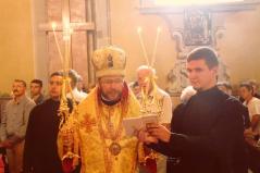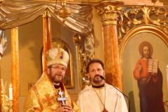 Az ünnepi Szent Liturgiát ószlávul és magyarul Níl Jurij Lushchak, munkácsi görögkatolikus segédpüspök vezette, a miskolci és munkácsi egyházmegyék papjainak koncelebrációjával. A segédpüspök, aki először látogatott Sajópálfalára, homíliájában a kegyképre tekintve beszélt saját megérintettségéről is. Mária arcáról a kedvesség és a törődés mellett kicsit szomorúság is tükröződik - mondta Trescsula László atya tolmácsolásában a segédpüspök. „Ahogyan Mária életében, a mi életünkben is ez a kettősség jár együtt. Az Istenszülőre tekintve azonban erőt merítünk saját keresztünk hordozásában.” Mária szívében az Isten dicsérete és Isten akarata volt az első, emlékeztetett a segédpüspök, majd felidézte Szent István személyét is, hiszen a búcsú napja a Julián naptár szerint Szent István emléknapja is volt egyben. Szent István király mindig irgalommal volt a szegény emberek iránt, „keze soha nem záródott be az őt kérőktől”, azért, mert nála is, mint Mária életében, Isten állt az első helyen. „Ez felhívás számunkra; megdicsőíteni Istent a mi életünkkel” és átadni hitünket gyermekeinknek. A segédpüspök azzal az óhajjal zárta beszédét, hogy mindannyian meg tudjuk tapasztalni azt az örömöt, hogy „Mária velünk van.”