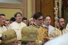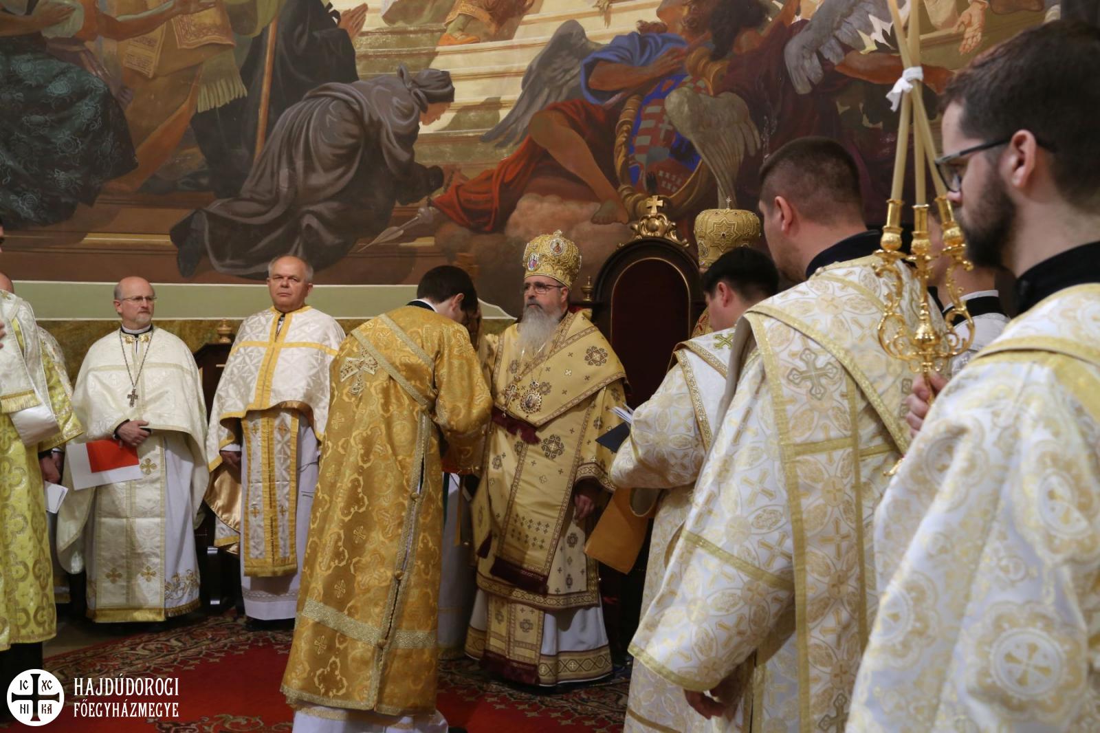 A kispapok kántorizáló szolgáta – hol magyarul, hol görögül – betöltötte a teret, otthonossá téve a kétnyelvű szertartás szokatlanságát.